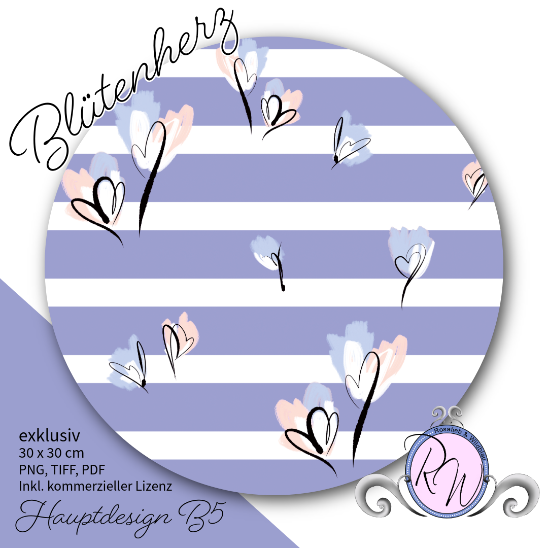 Produktbeschreibung: Exklusives Stoffdesign „Blütenherz Part2 B5“ Hauptdesign