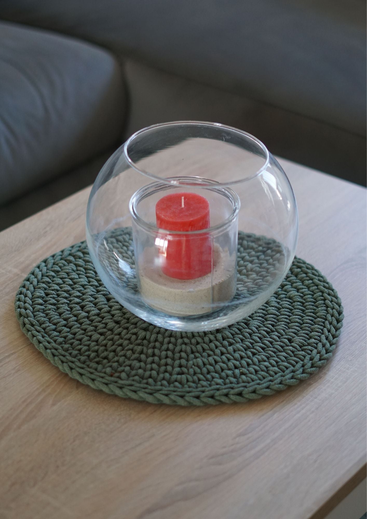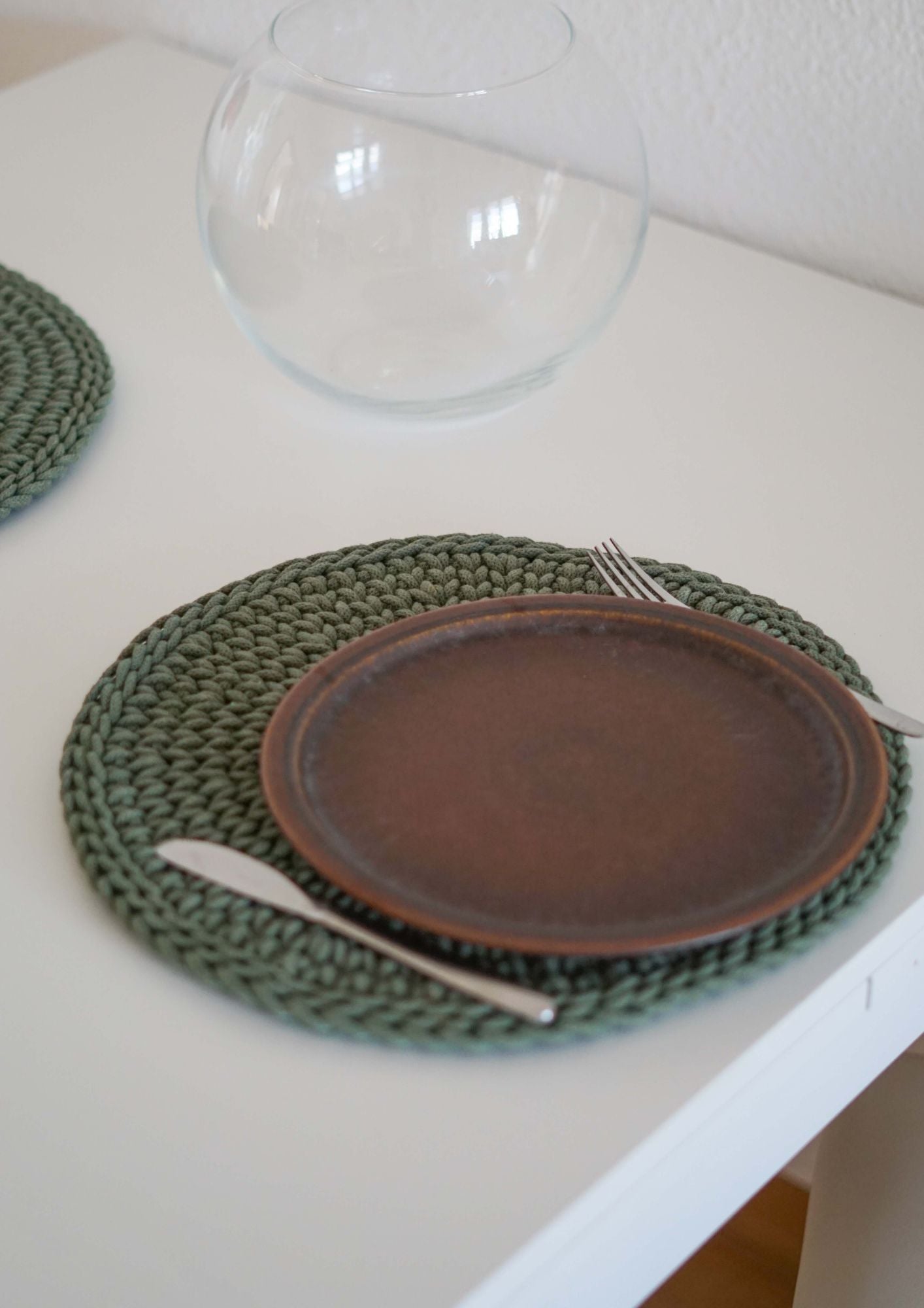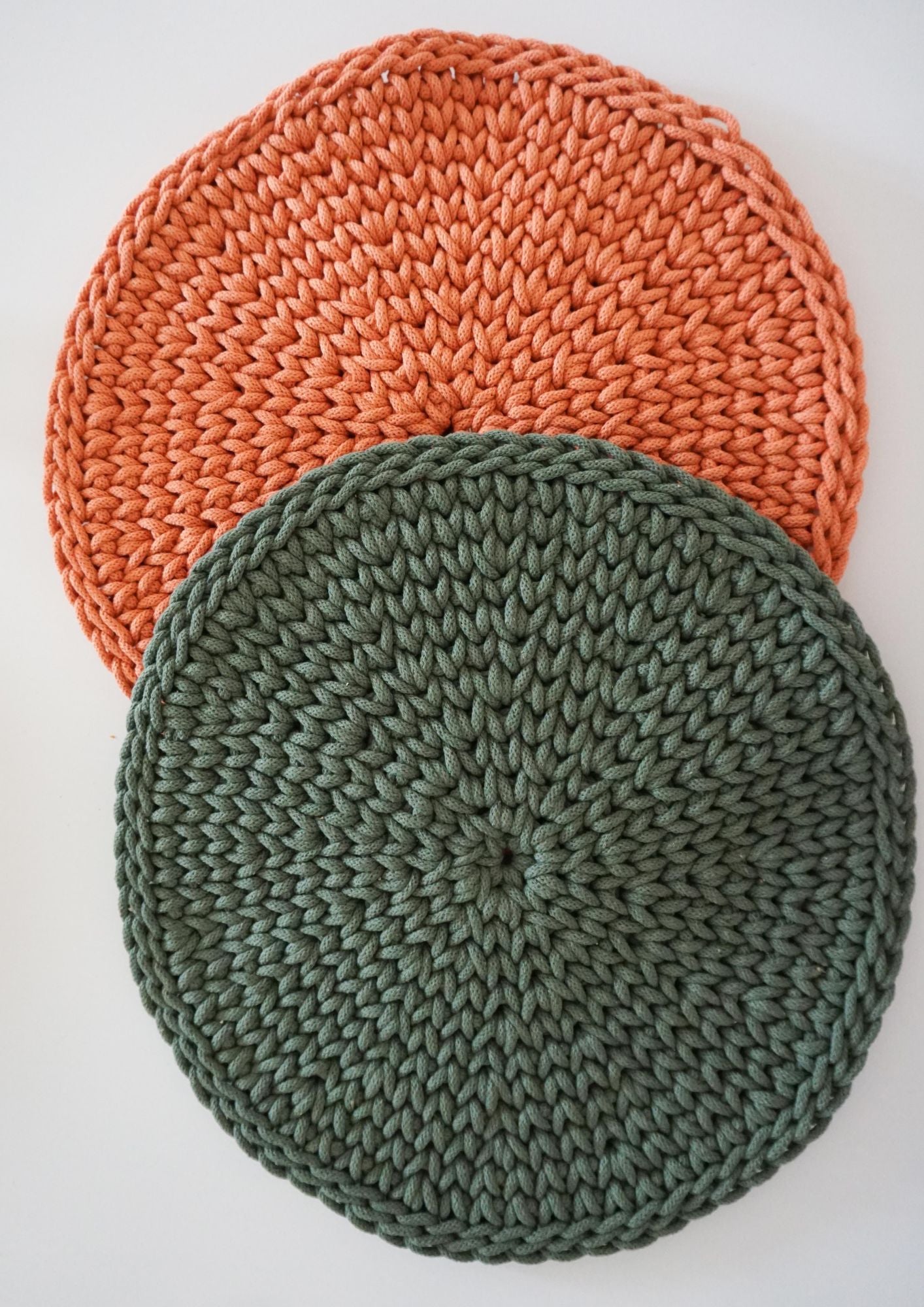 Dieses Muster eignet sich für viele Garne und Nadelstärken. Aber beachte, dass das Platzset am Ende anders aussehen wird.