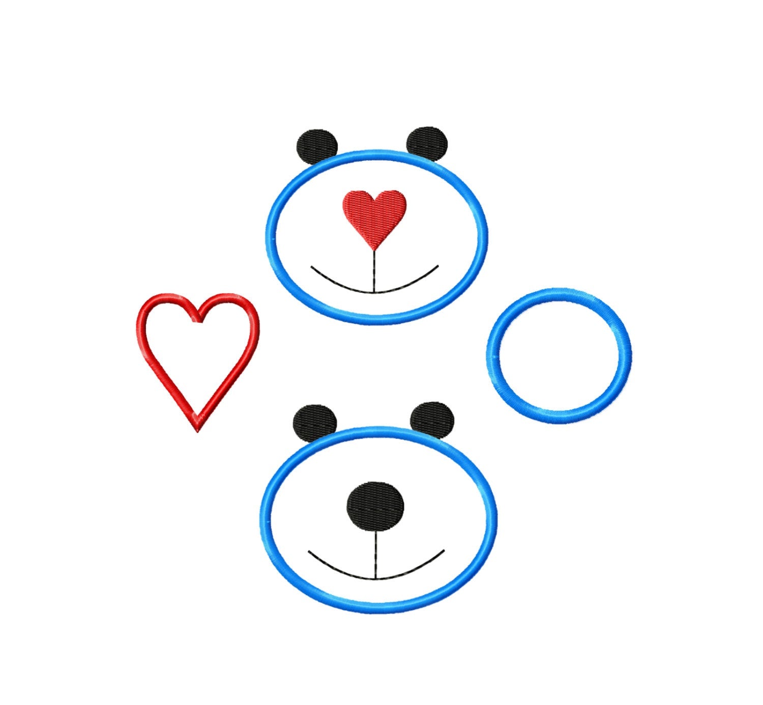 Stickdatei Gesicht "YlesBär“ Rahmen 10 cm x 10 cm, Applikation, Herz, Bär