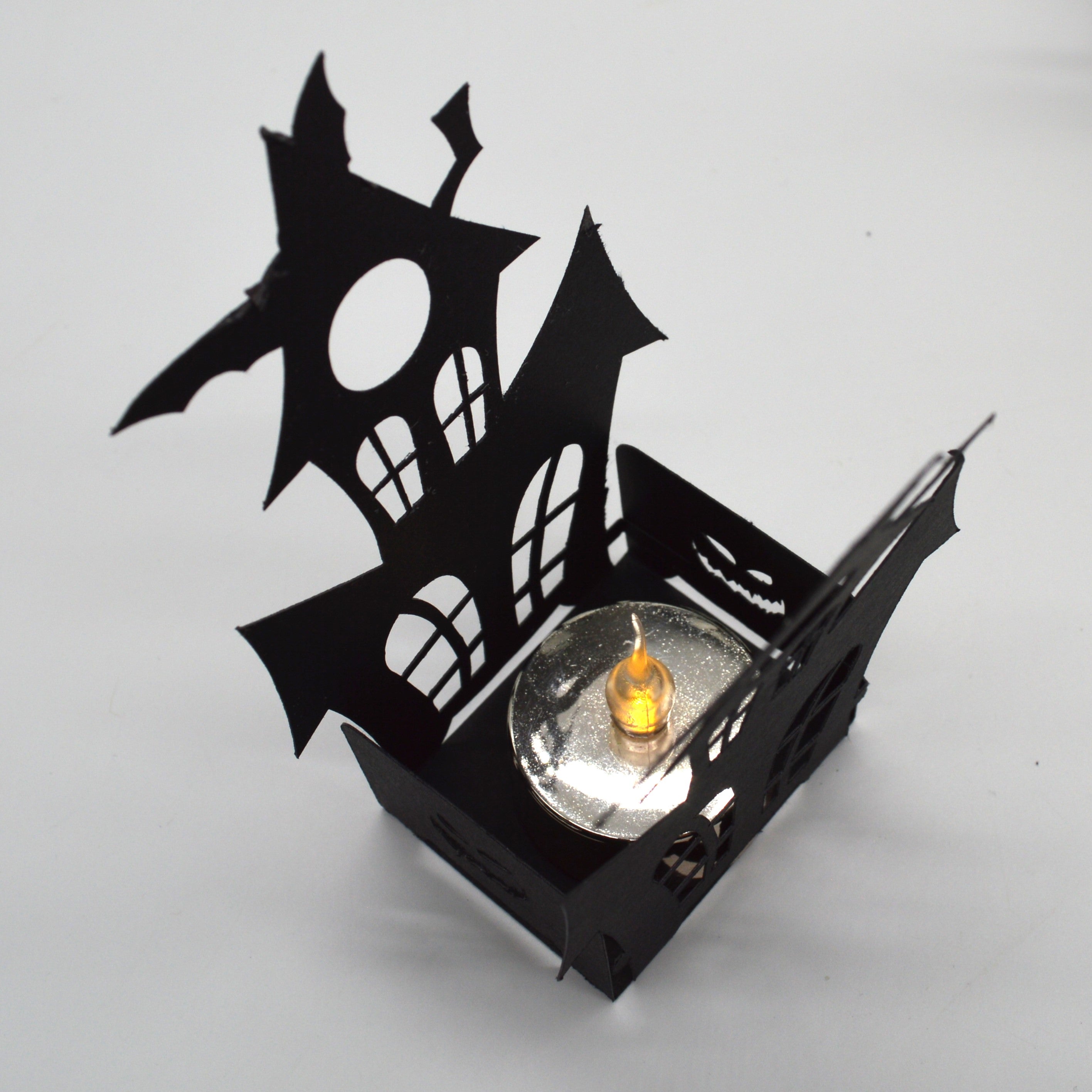 Plotterdatei Haus Gruselhaus Halloween Fledermaus Teelicht