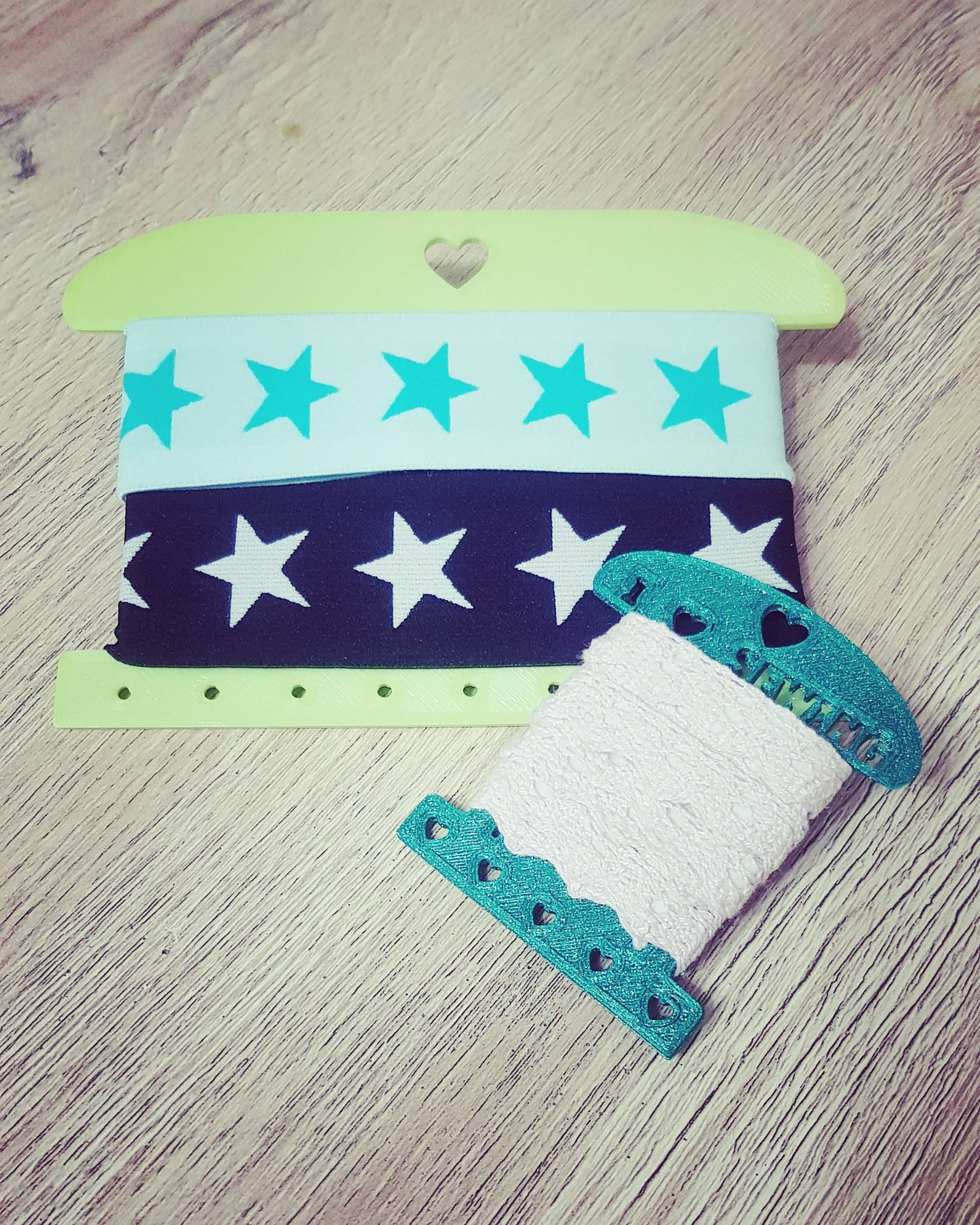 Dieses vielseitige Wickelkarten Set bringt Struktur, Übersicht und eine Extraportion Herz in dein kreatives Chaos. Die liebevoll gestalteten Wickelkarten aus dem 3D-Drucker eignen sich perfekt zum Aufwickeln von Gummibändern, Tüddelband, Spitzen, Borten oder Kordeln – ideal für Nähen, Basteln und DIY-Projekte.