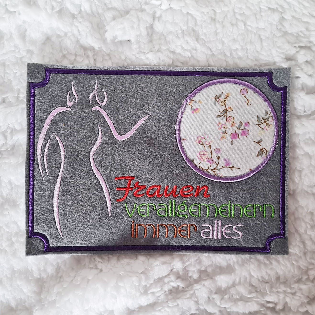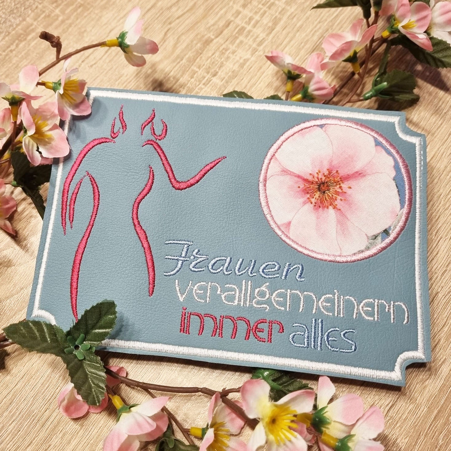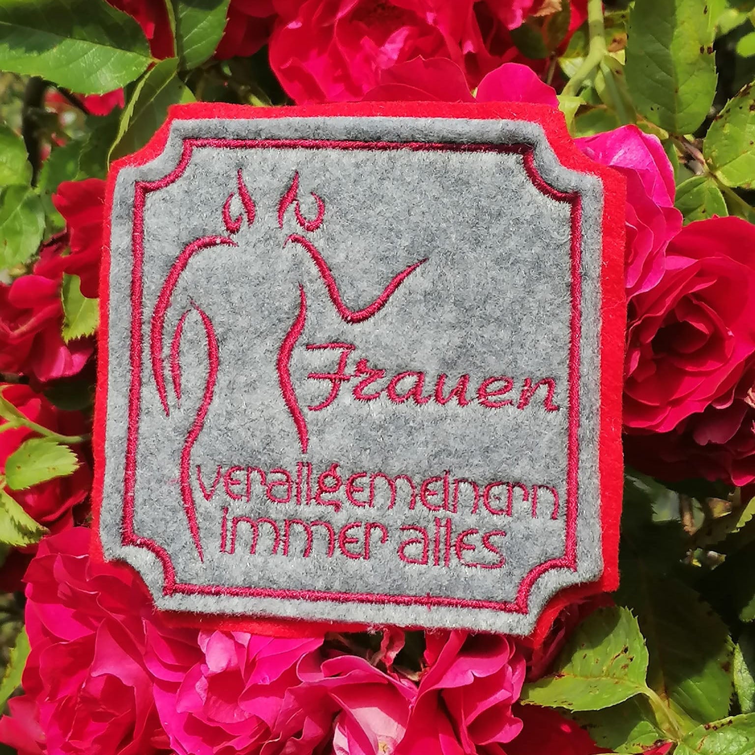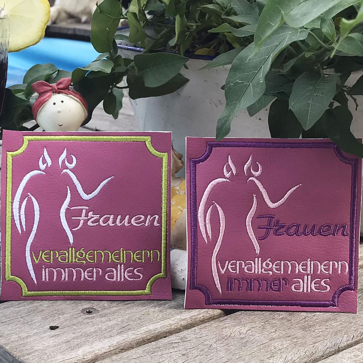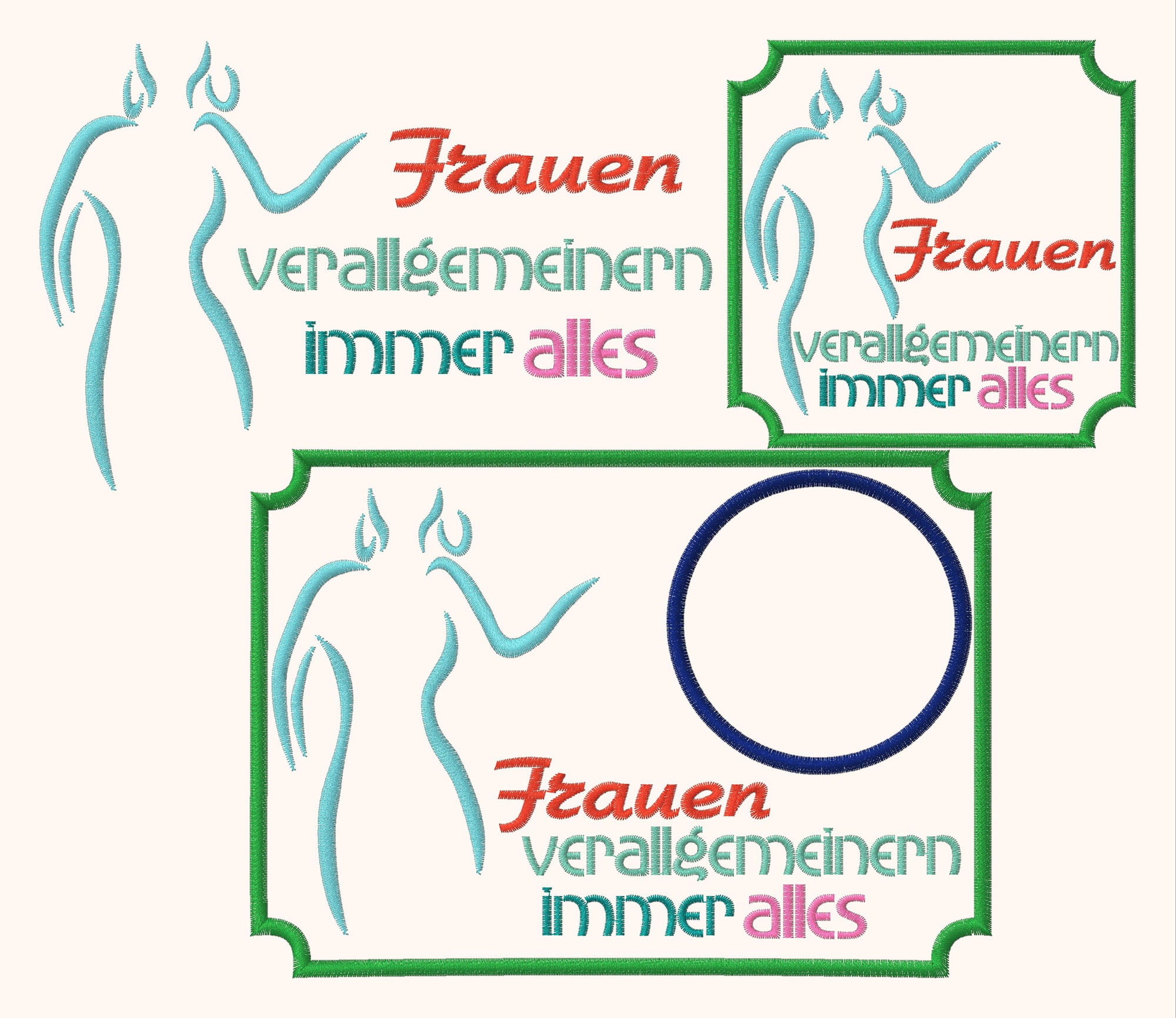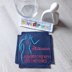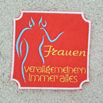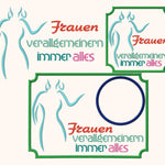 Stickdatei "Frauen verallgemeinern immer alles" ITH Mugrug Untersetzer und Einzeltext, 3 Dateien für 10x10cm bis 13x18 cm Rahmen
