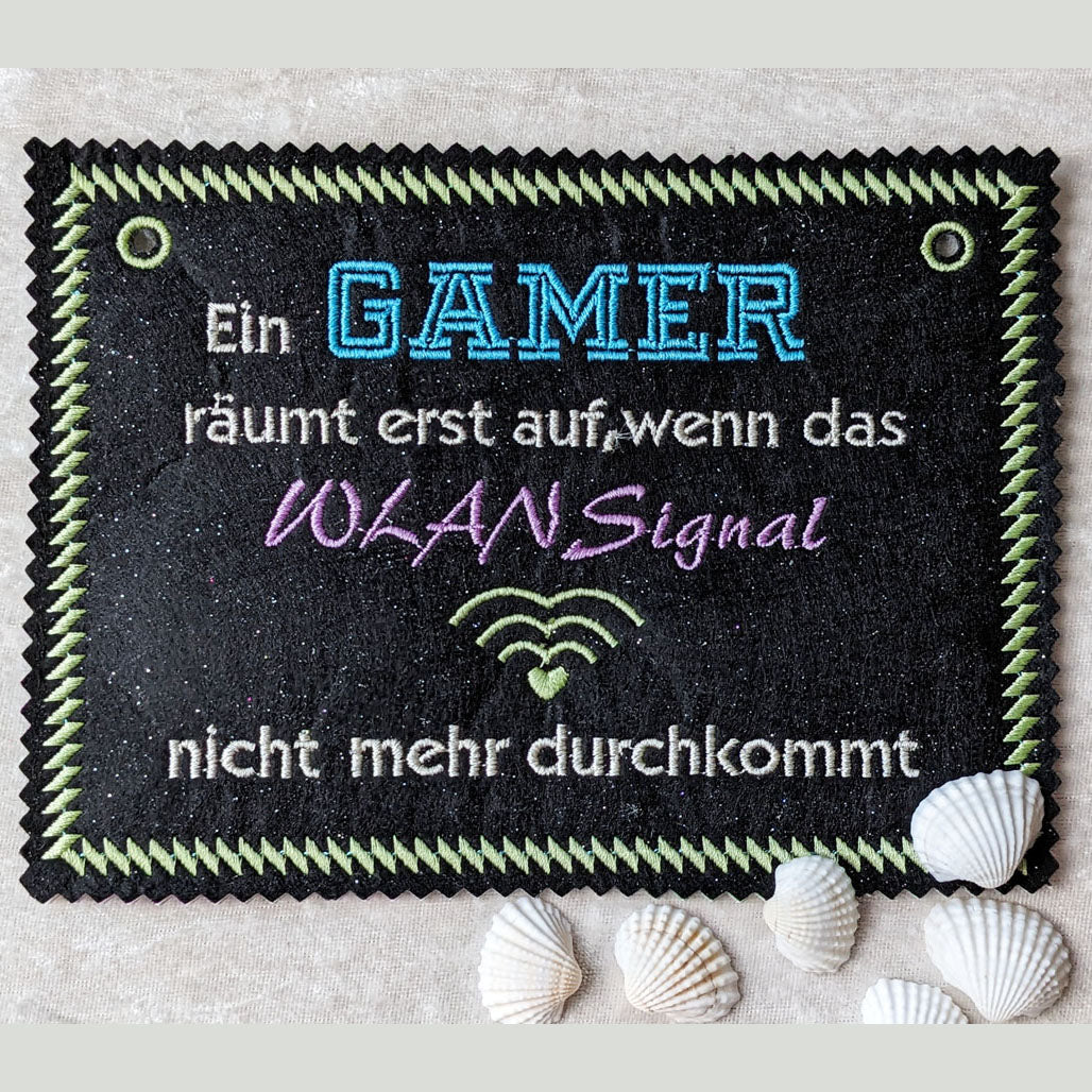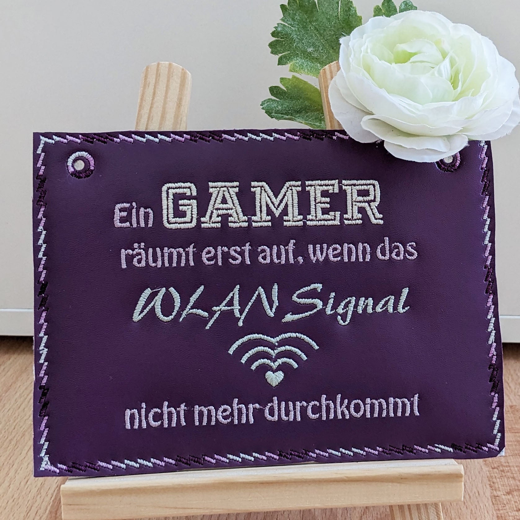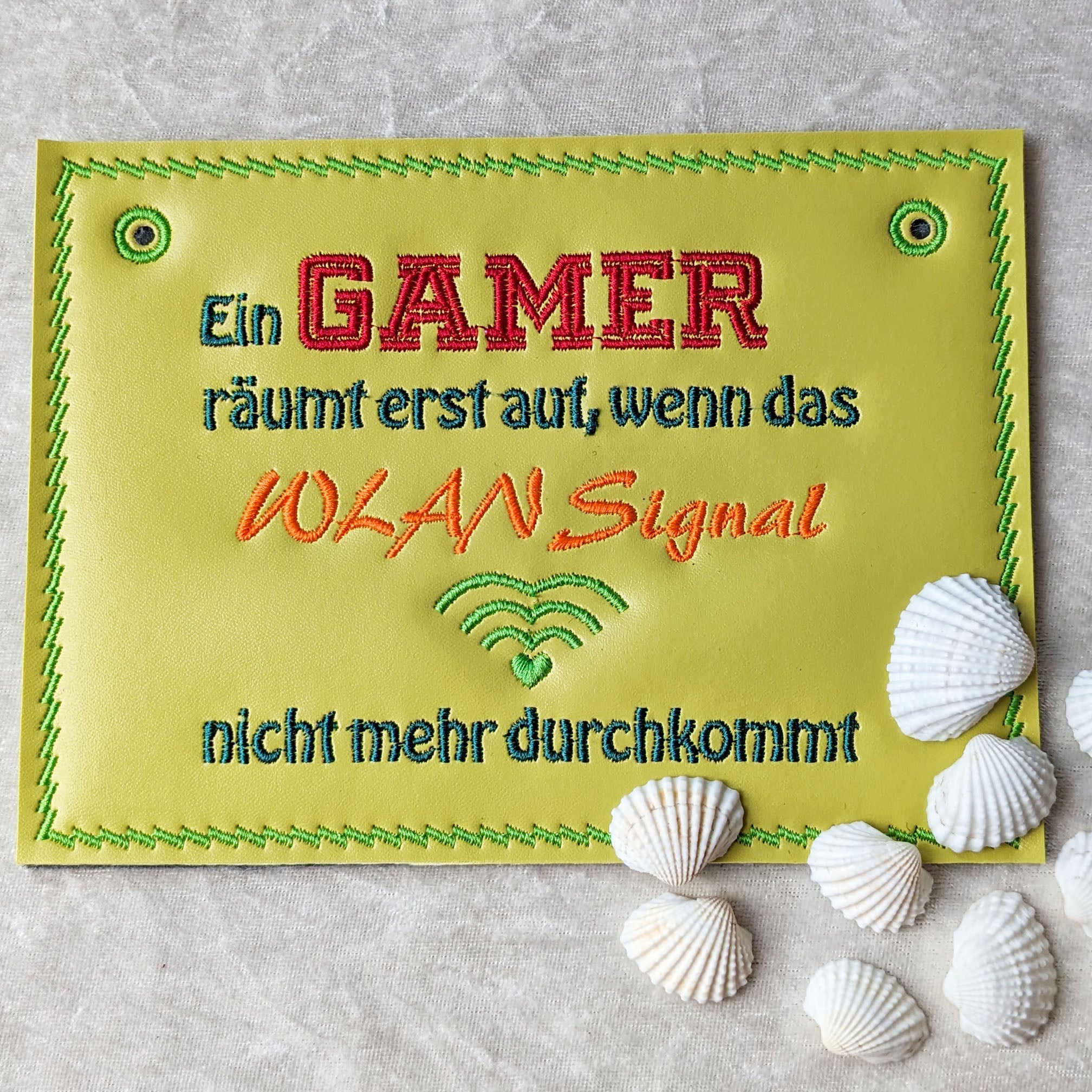 Stickdatei "Schild Gamer WLan" ITH Schild in 2 Versionen plus Einzeltext 3 Dateien bis 13x18 cm