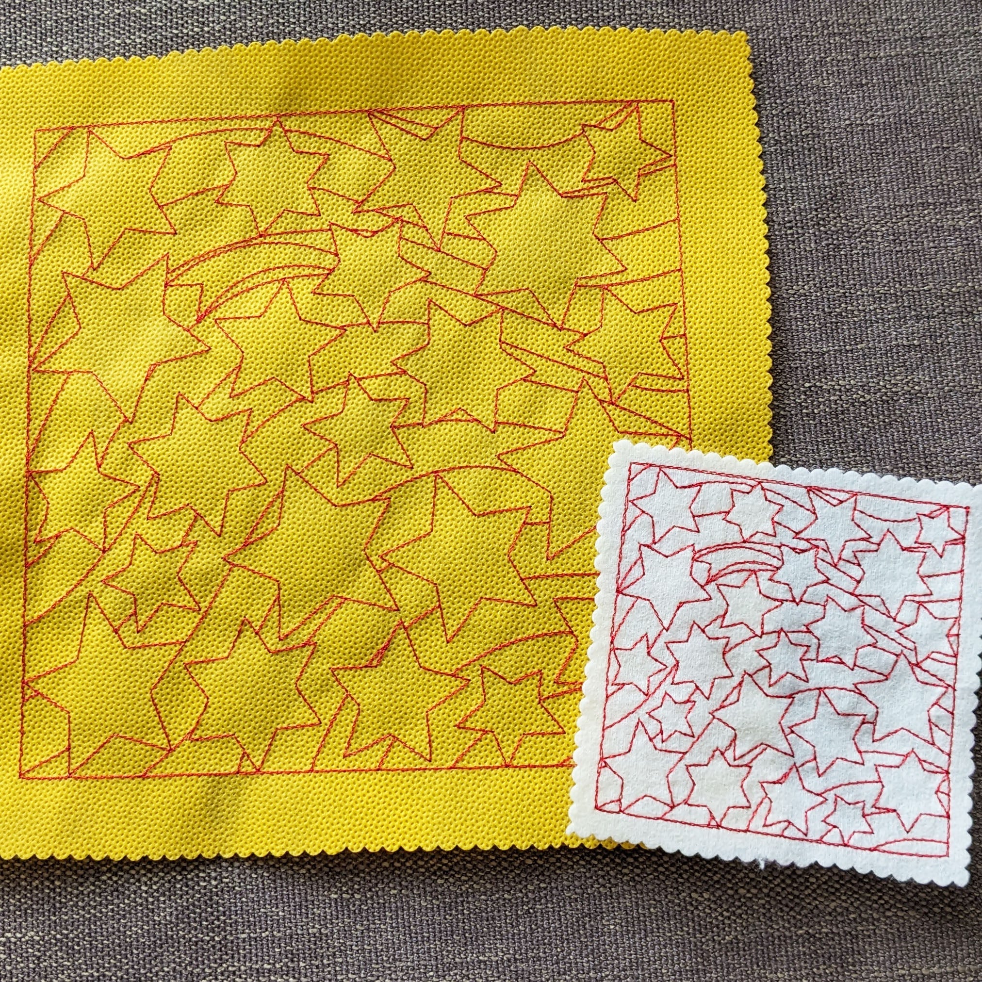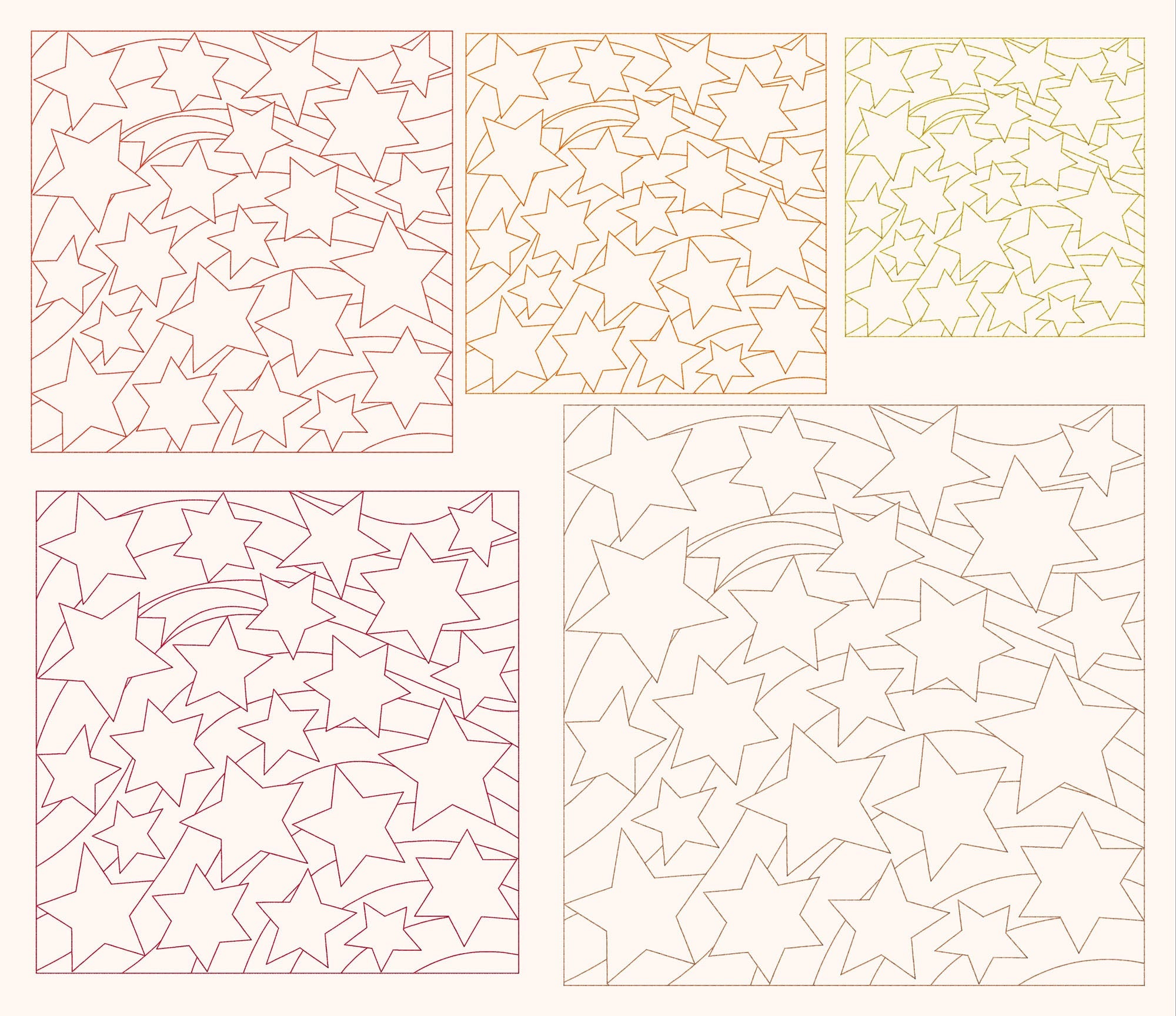 Digitale Stickdatei Füllmuster Suchbild 21 Sterne und eine Schnuppe Redwork Stickmuster in 5 Größen von 10x10cm bis 20x20cm