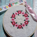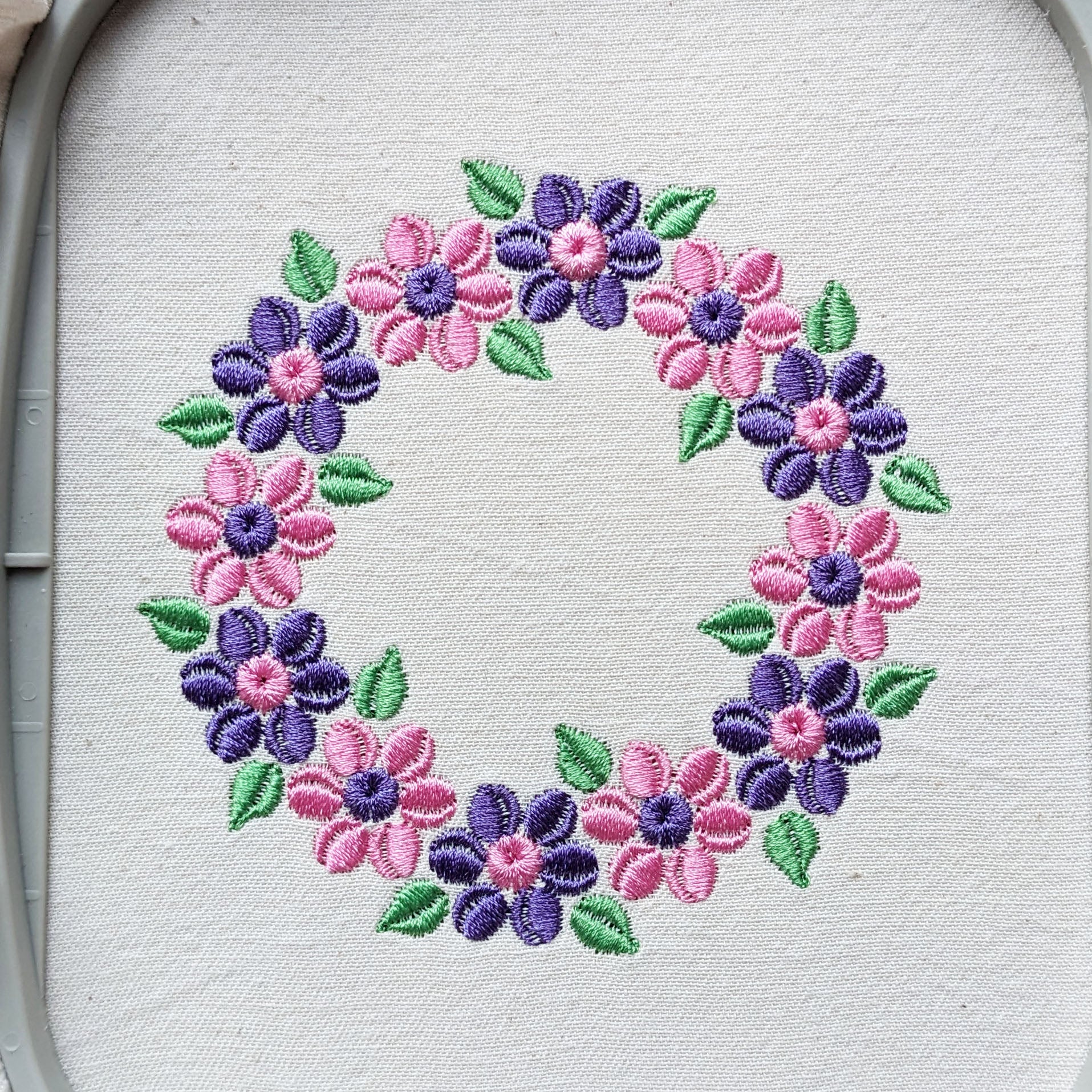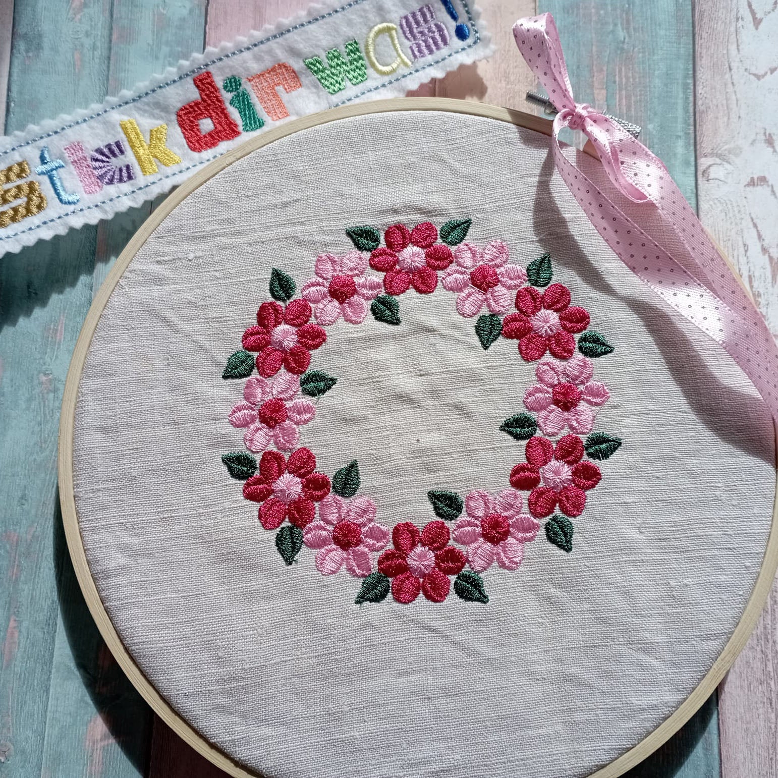 Die niedliche Ranke "Anna" bekommst du als Satinstick Blumen als Ranke, Bordüre zum Aneinandersetzen, Ecke und als Kranz in zwei Größen.