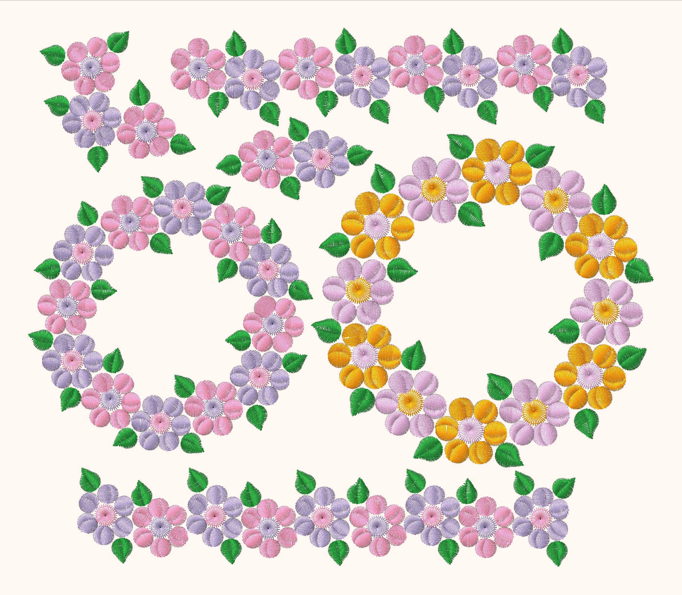 6x Stickdatei Ranke Anna, Satinstick Miniblumen als Kranz, Ranke und kleine Ecke