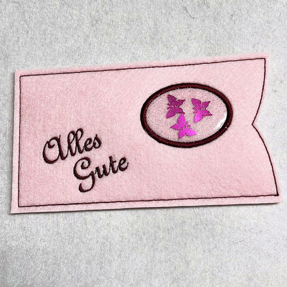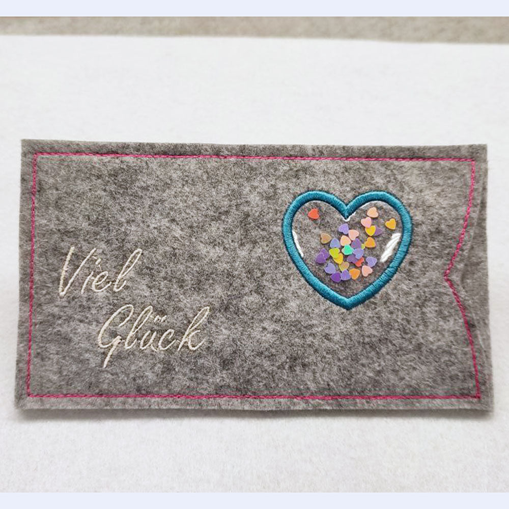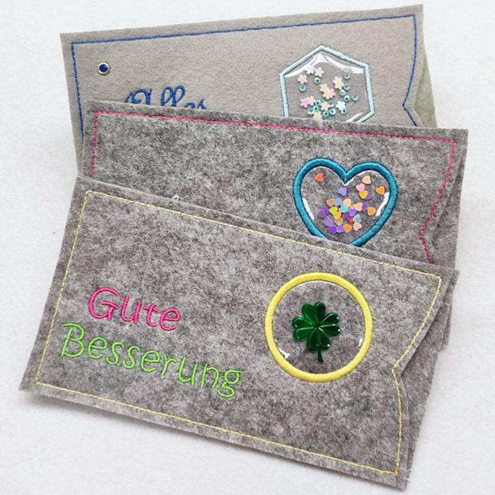 Stickdatei "Schokohülle Konfetti" ITH 6x Hülle für Schokoladentafeln mit Applikation, eingesticktes Fenster für Streuteile