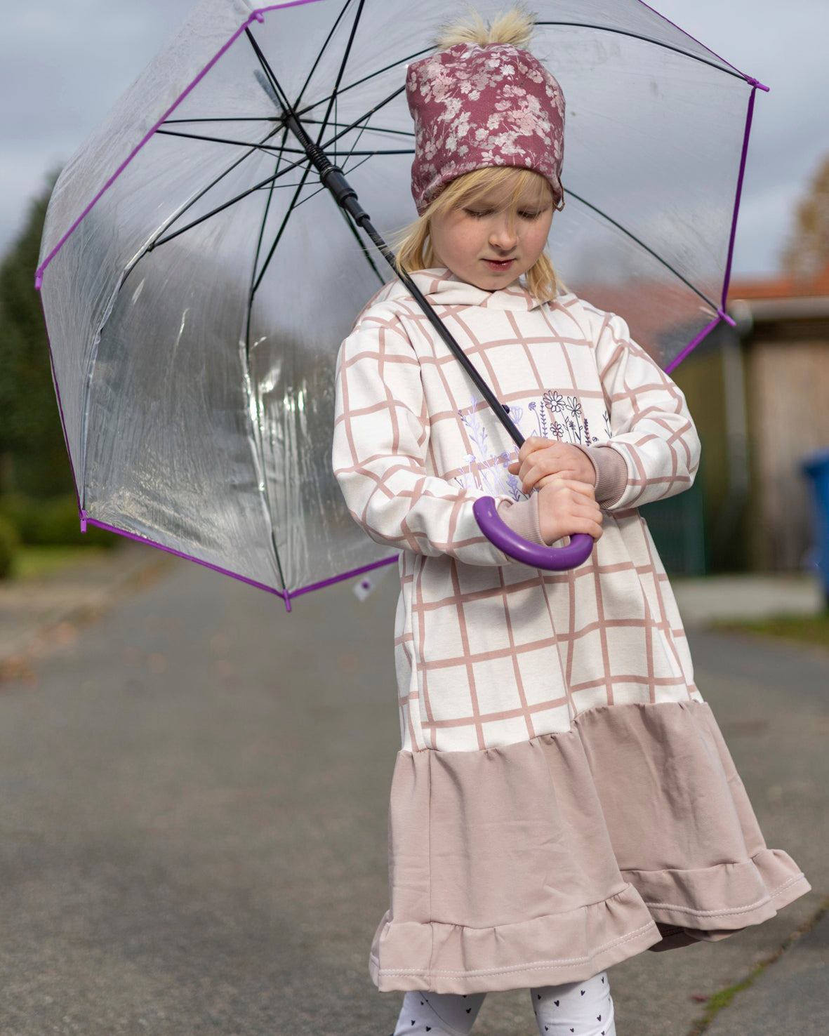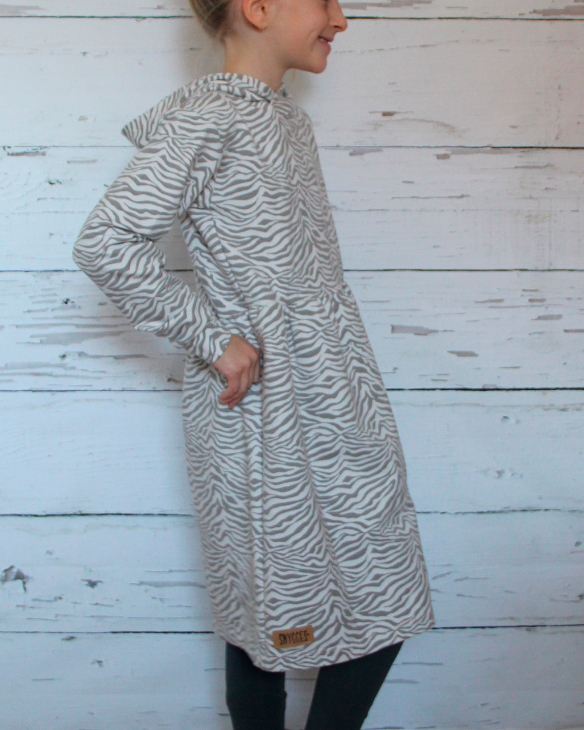 Auch das Kleid kannst du mit Kapuze oder Halsbündchen nähen.