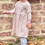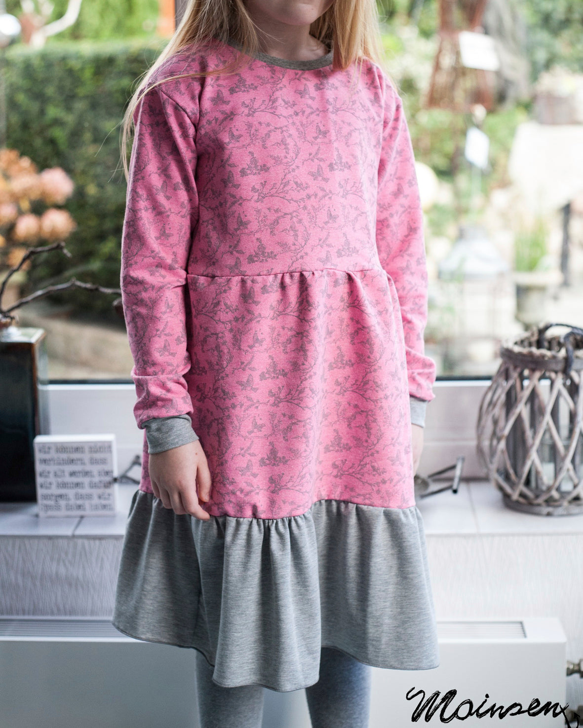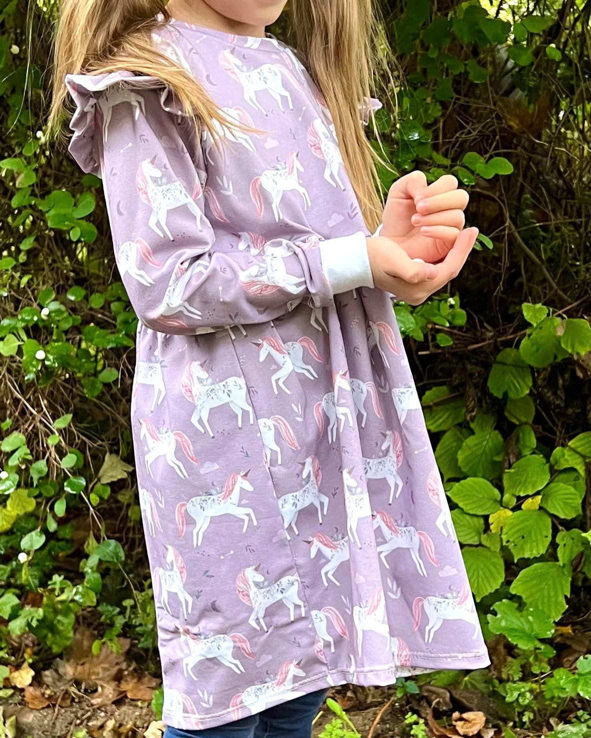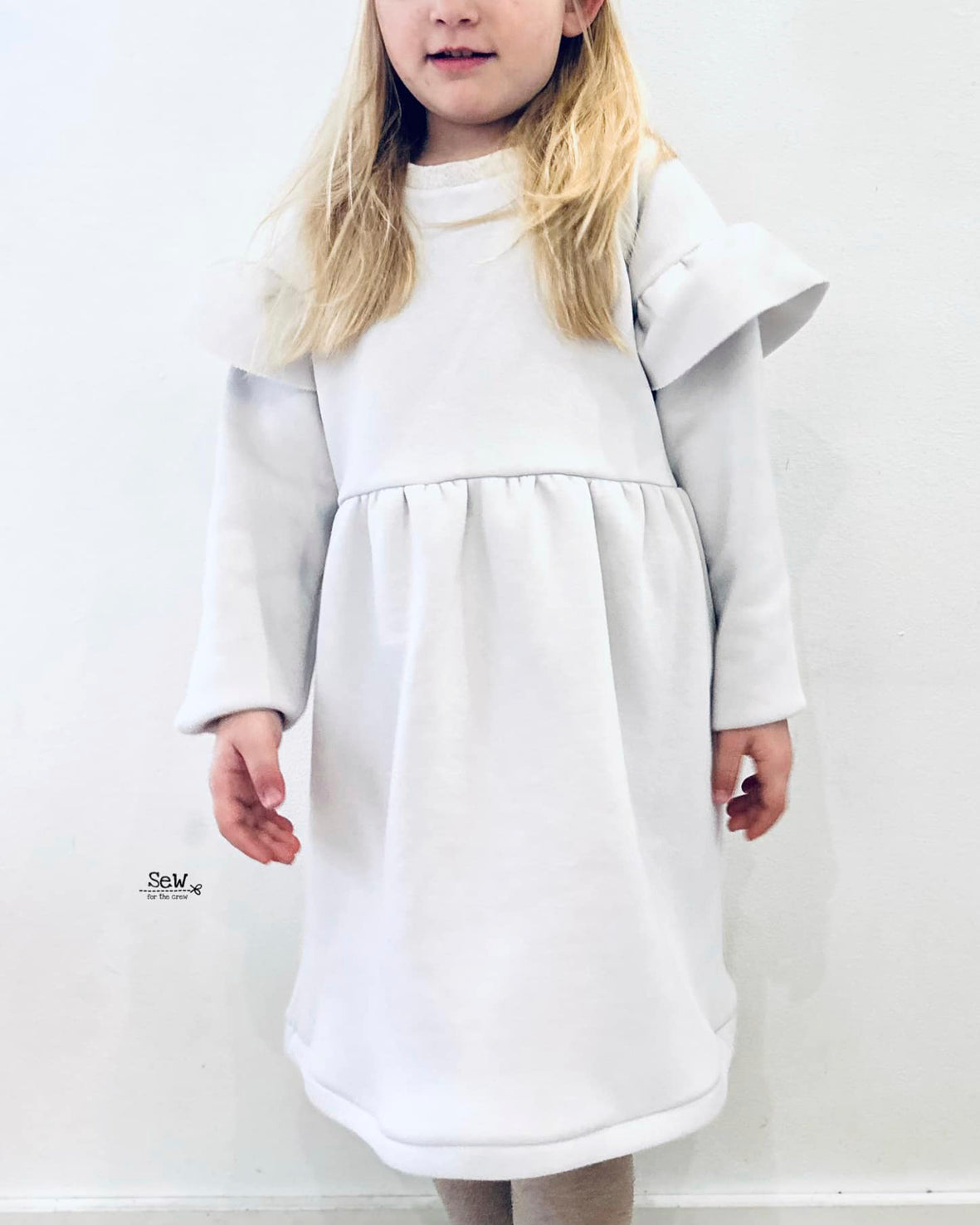 Das Kleid ist für (leicht) dehnbare Stoffe wie French Terry, Sweat oder Jacquard ausgelegt.