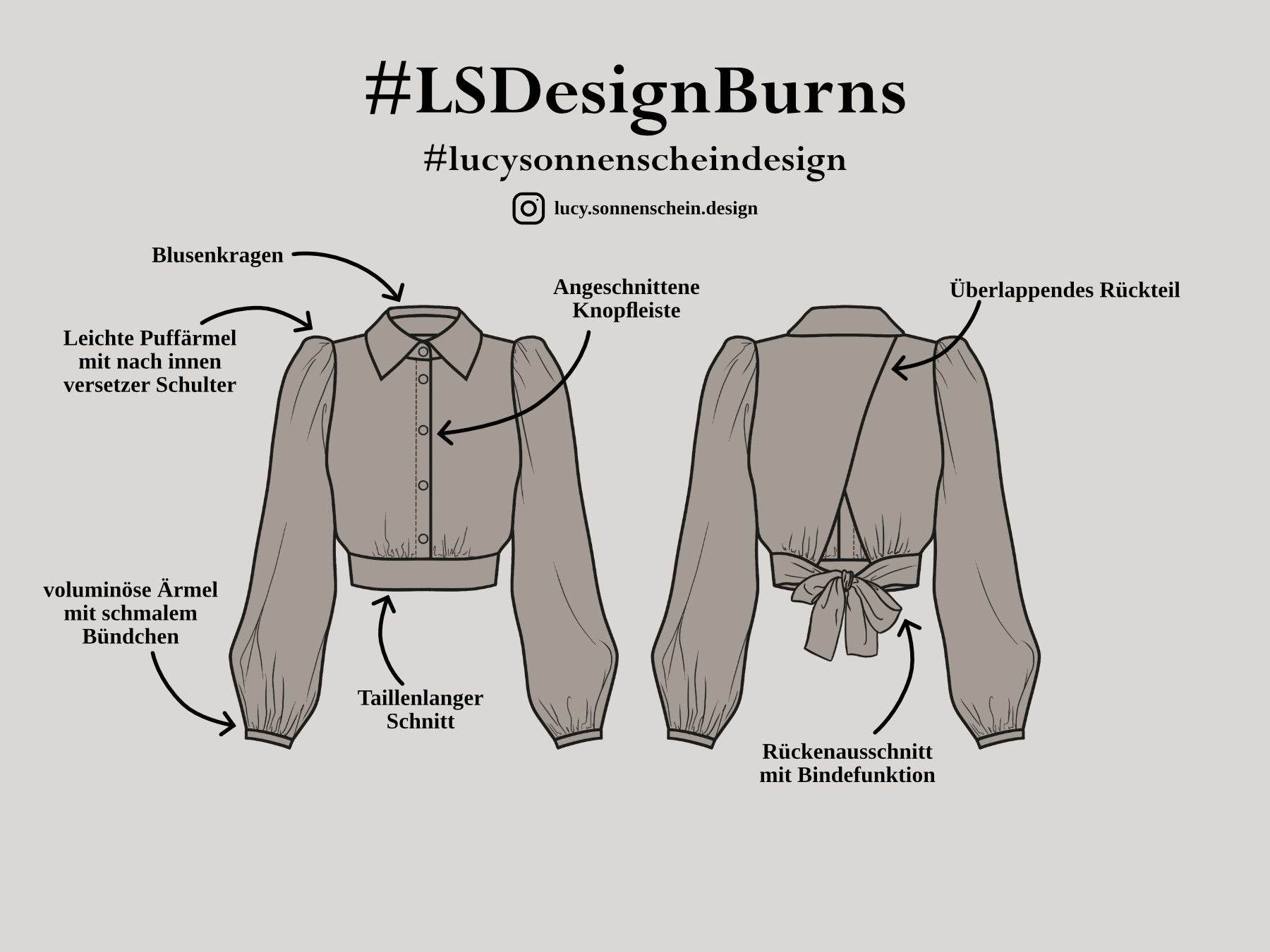 Die Passform der Bluse ist locker geschnitten. Das Schnittmuster ist für unelastische Stoffe ausgelegt.