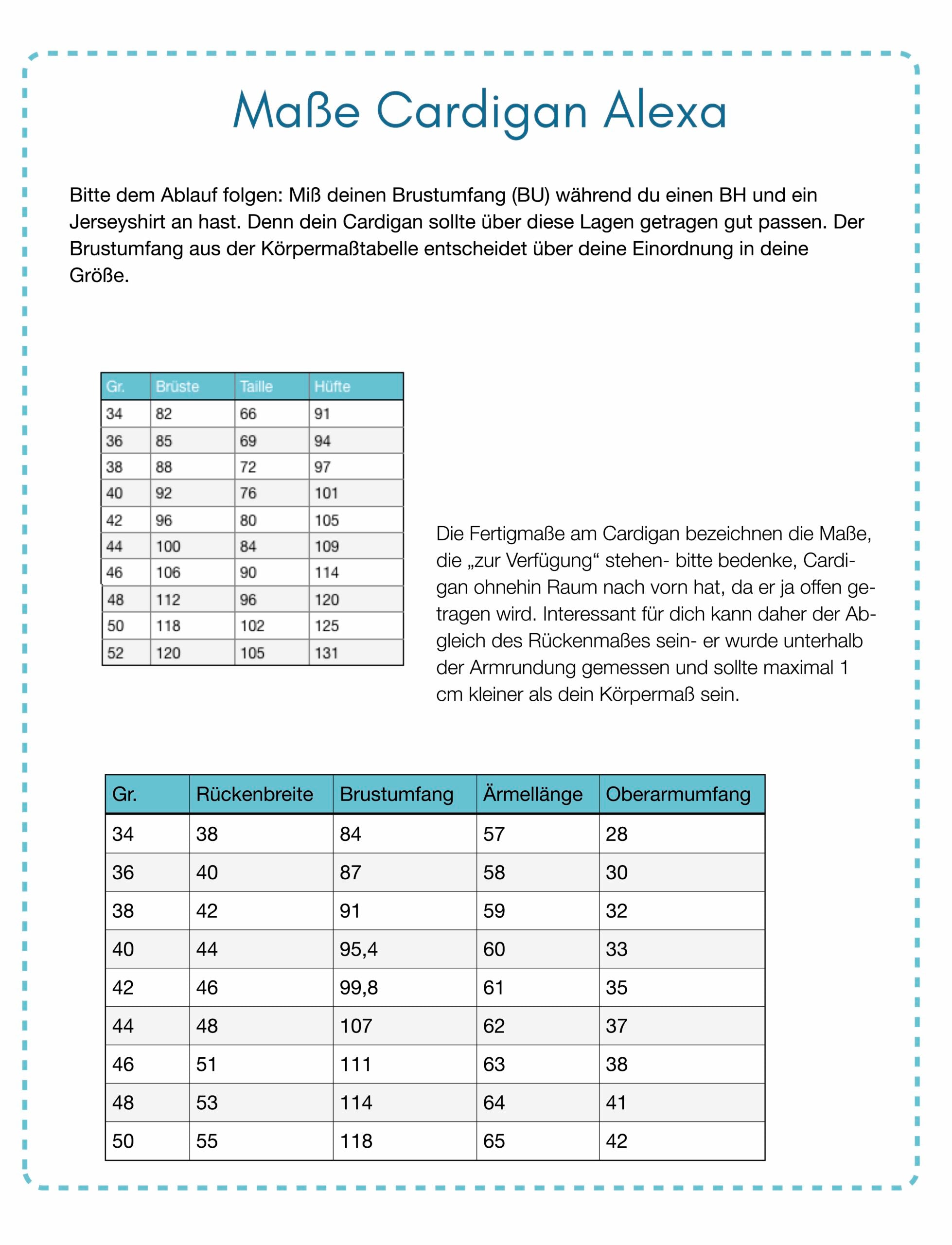 Schnittaufbau: Einzelgrößen in 34-50 als Mehrgrößenschnitt, exklusive Nahtzugabe