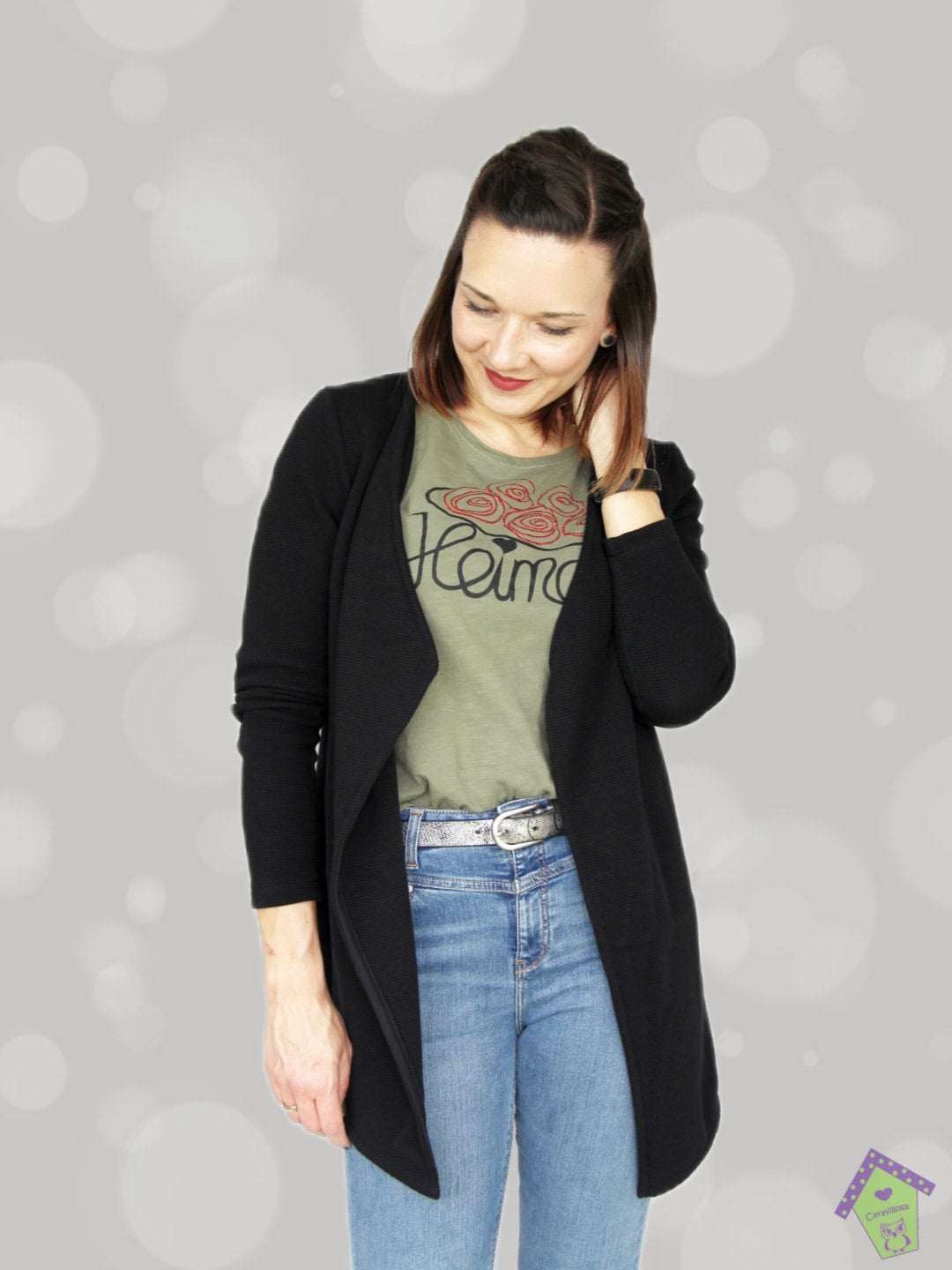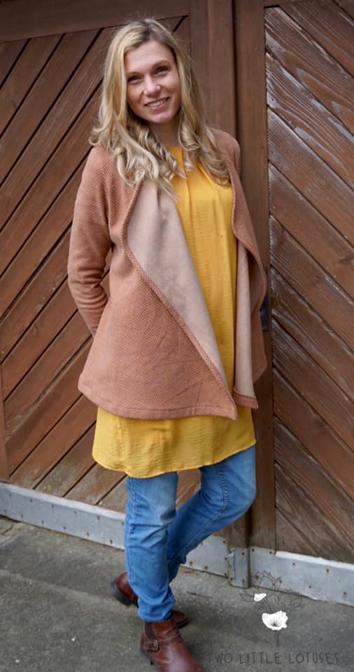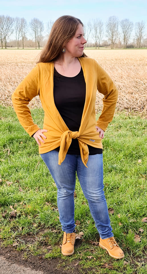 Der Cardigan ist ein echter Allrounder und kann zu Kleidern und Röcken kombiniert werden, aber auch klassisch zur Hose mit Top. Schau hier doch gerne mal bei meinem Schnitt für das Kala Top vorbei!