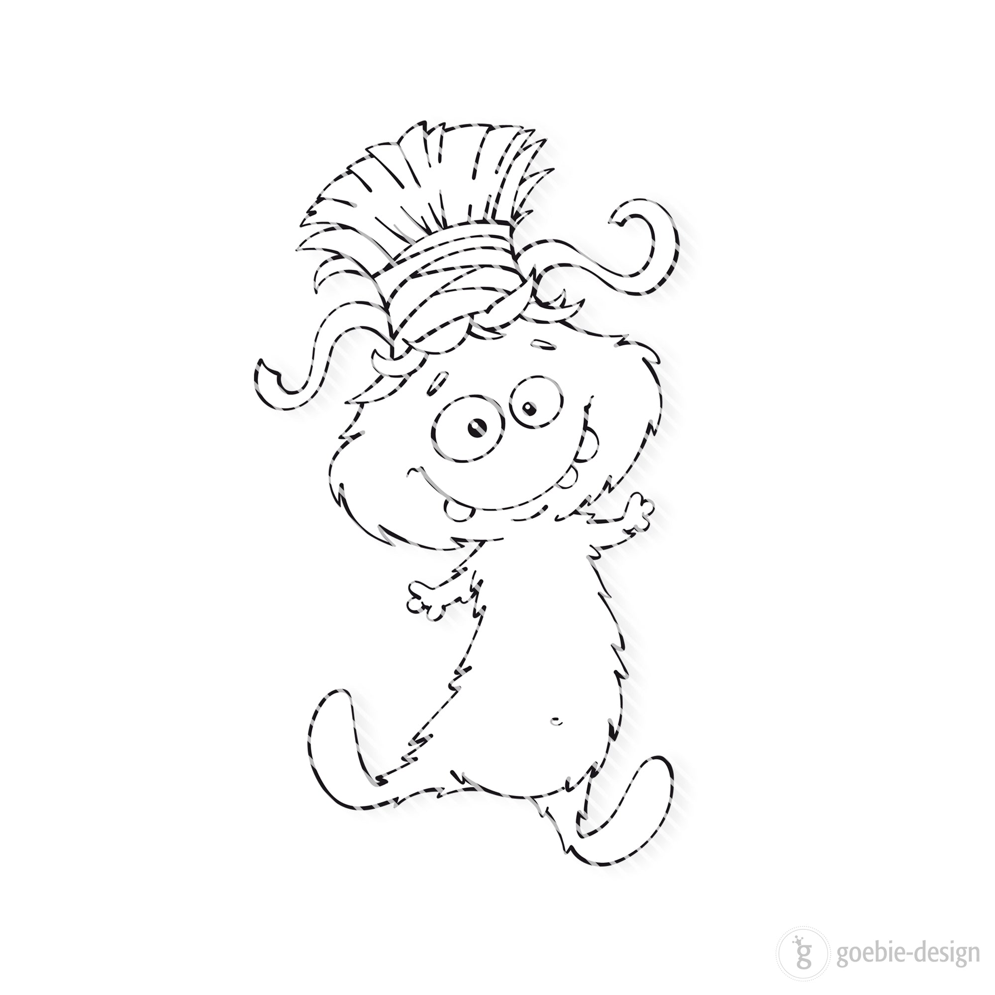 Digi Stamp Set "Monster mit stylischer Frisur" | SVG | DXF | JPG | transparent PNG | line art + colour | Digital Download