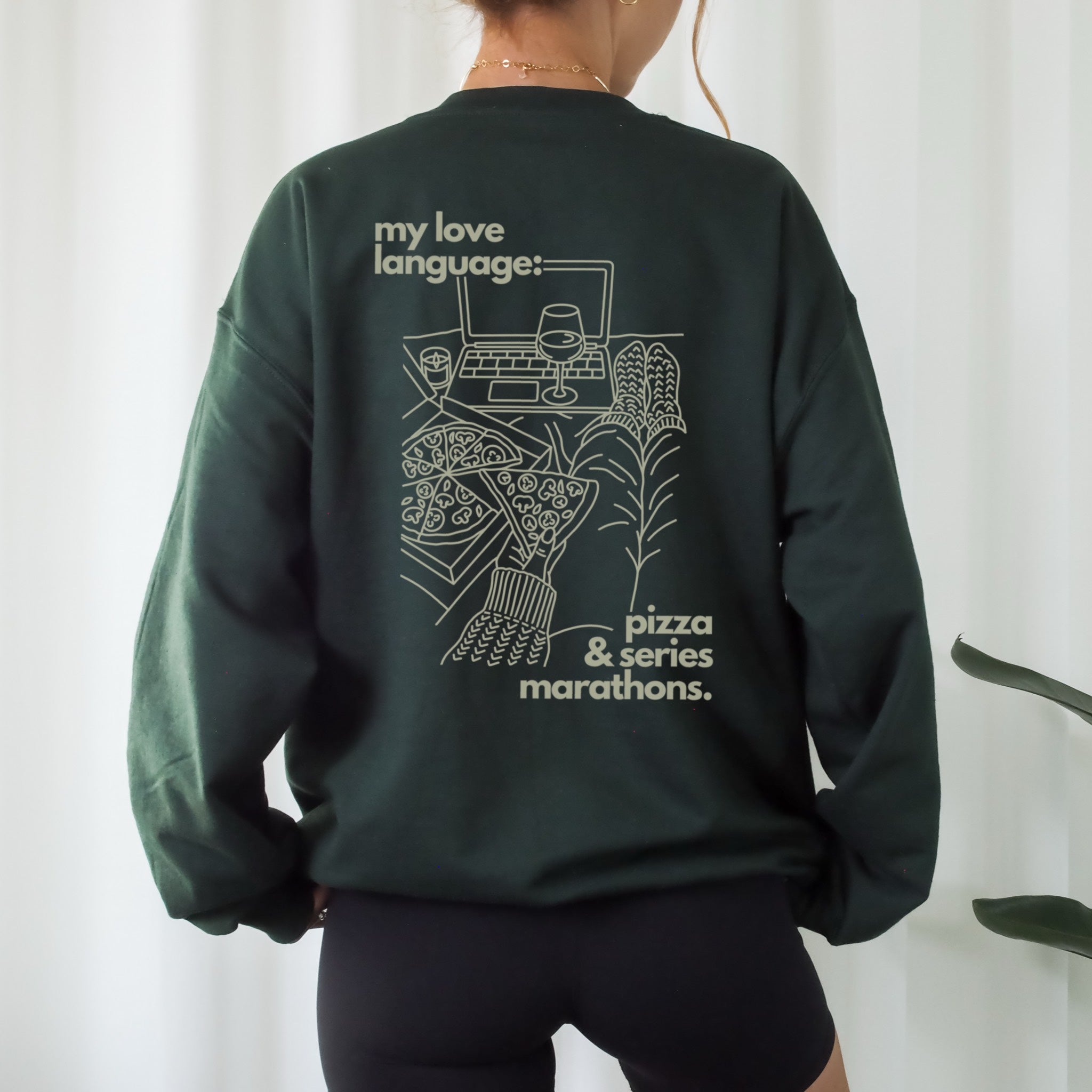 Es gibt nichts Besseres als ein entspannter Abend mit einer heißen Pizza, einem Glas Wein und deiner Lieblingsserie. Dieses Design fängt genau dieses "Cozy" Gefühl ein, das wir alle lieben: Entspannen, Genießen und den Moment leben. Der vordere Print zeigt ein köstliches Pizza Stück, während das große Rücken-Design mit einem Glas Wein, einem Laptop, einer Schachtel Pizza, Jogginghose und Socken die perfekte Atmosphäre für deinen „Pizza & Chill“-Abend widerspiegelt.