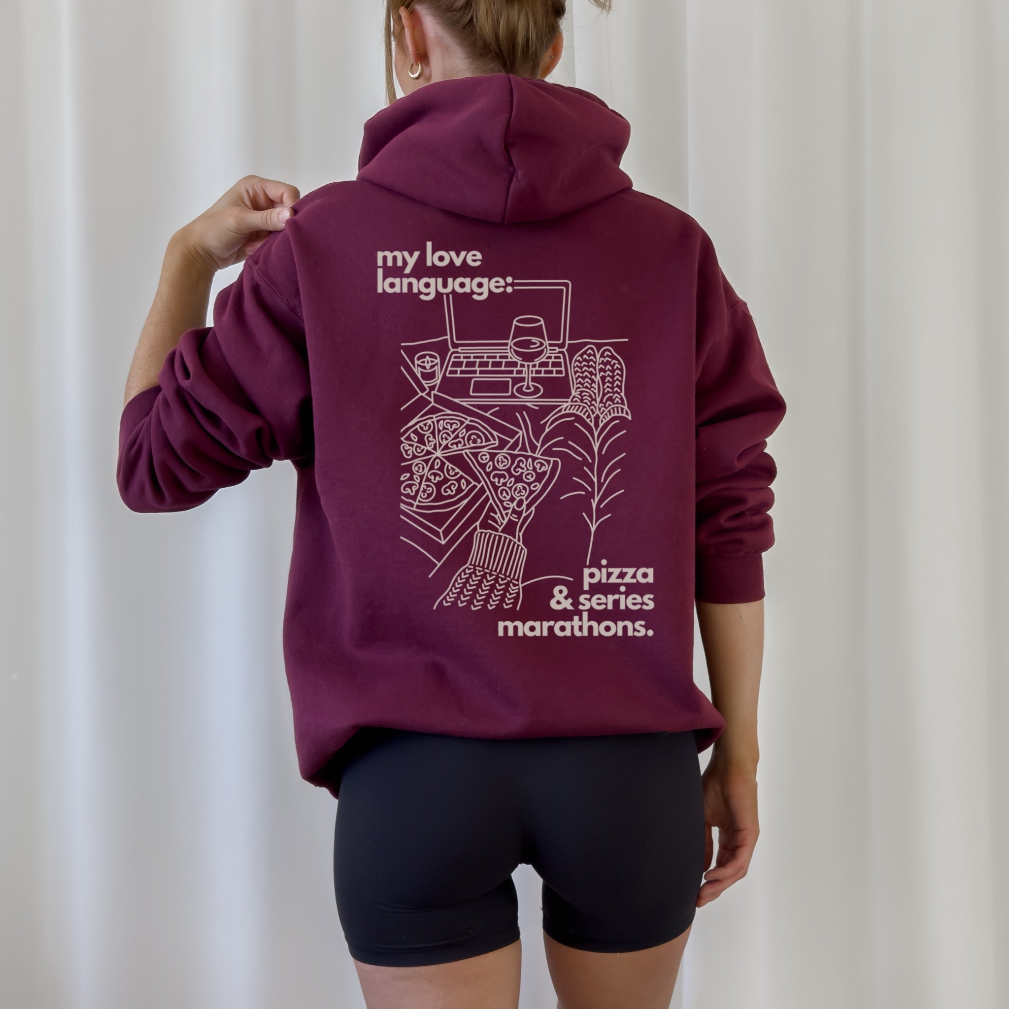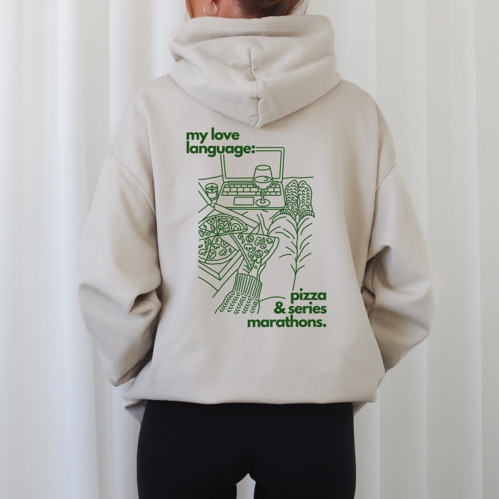 Gestalte deinen Lieblings-Hoodie mit diesem Design und genieße deine nächsten „Pizza & Chill“-Abende in deinem ganz persönlichen Outfit. Auch eine perfekte Geschenkidee für Freunde und Familie, die gerne entspannen und ihre Lieblingsserien schauen. 🍕📺🍷