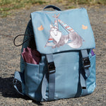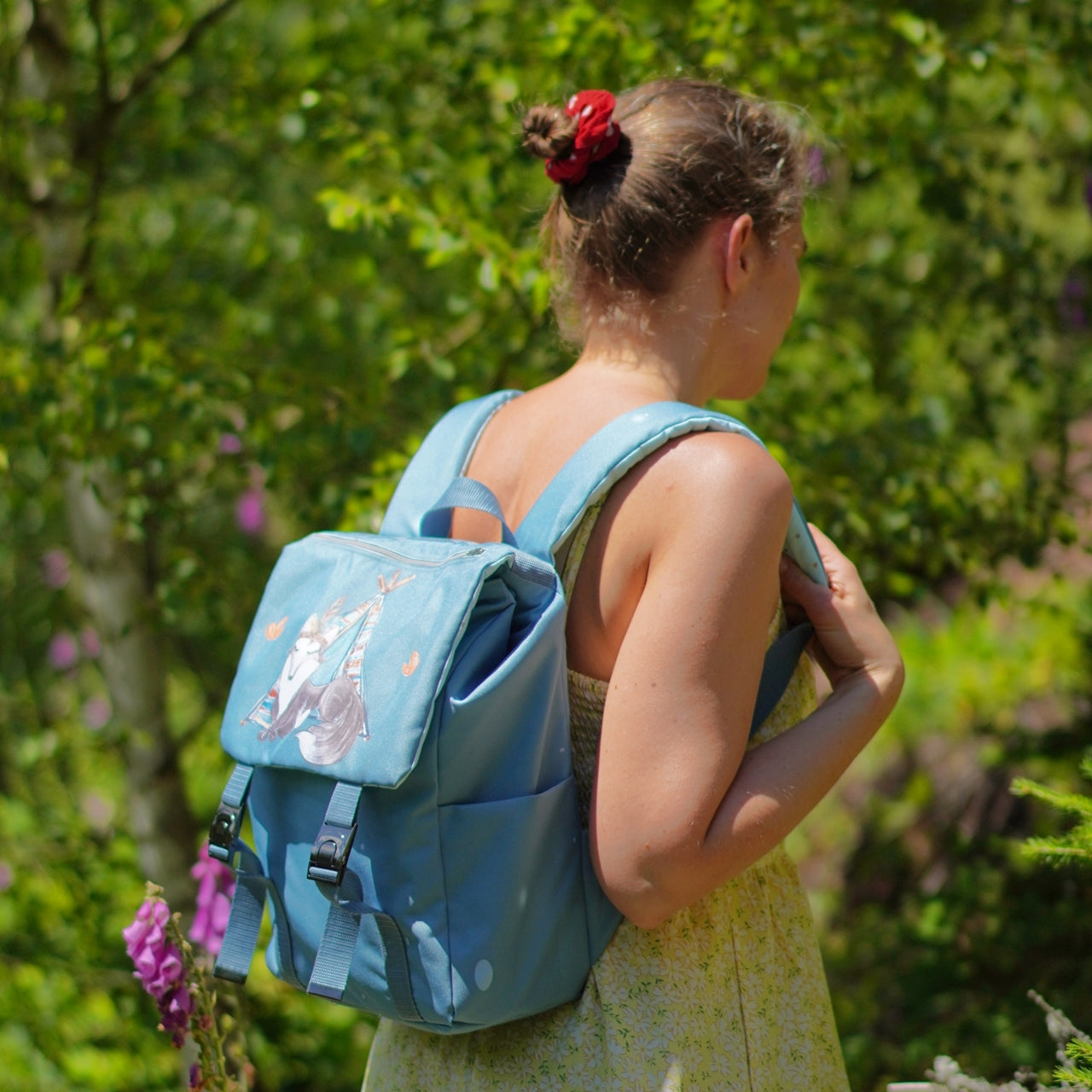 Dieser raffinierte Rucksack sieht schmal und elegant aus, lässt sich bei Bedarf aber dank der zwei Druckknöpfe etwas vergrößern. Er hat eine Zwischenwand innen und eine kleine Innentasche.