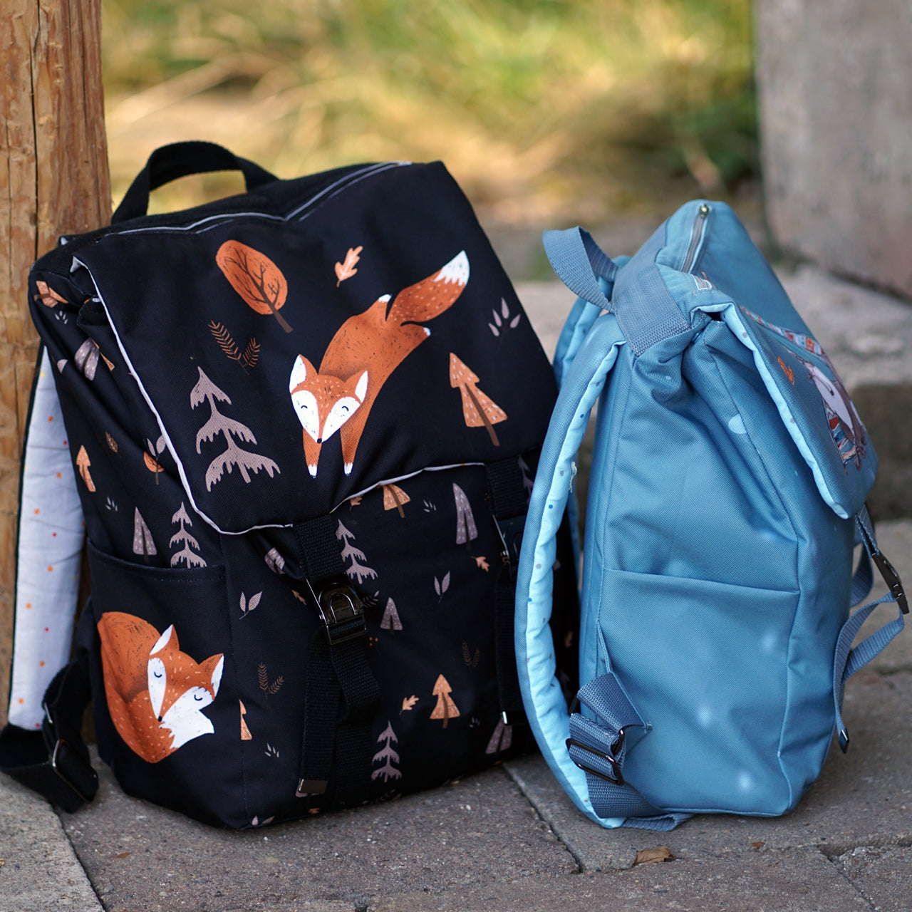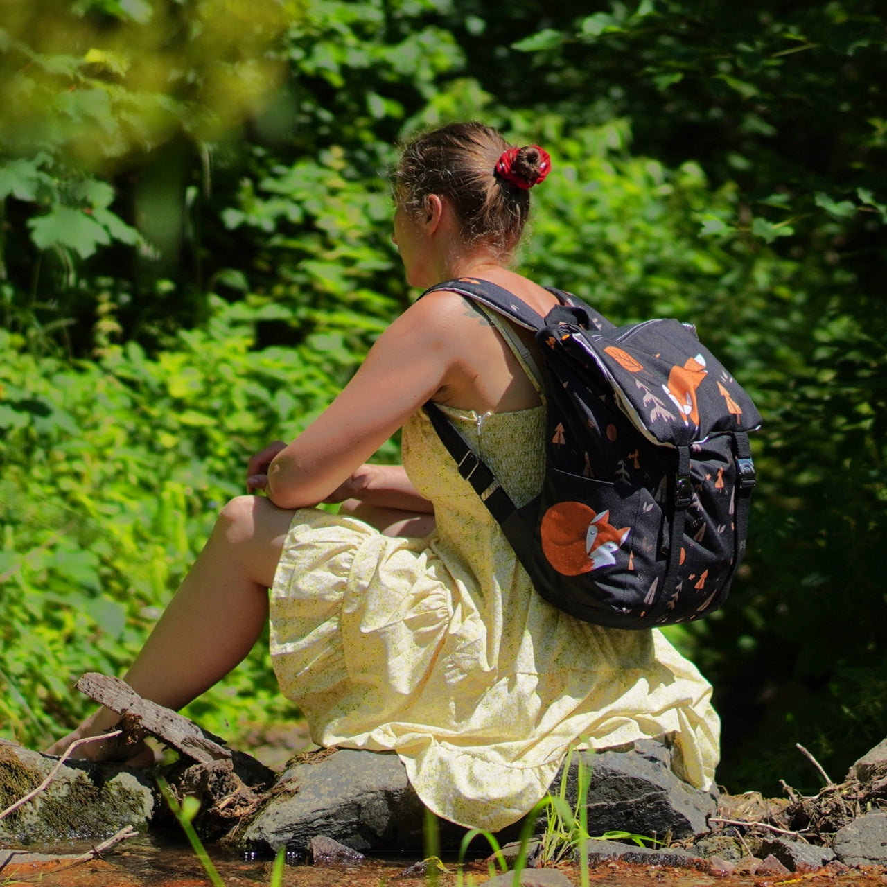 Als Stoff für Außen ist eine nicht elastische, stabile Webware geeignet, am besten wäre es natürlich, wenn dieser Stoff auch wasserdicht ist, damit auch euer Rucksack später einen kleinen Regenschauer abhalten kann. Für den Innenstoff eine bügelbare Webware verwenden.