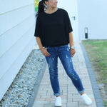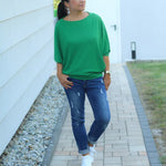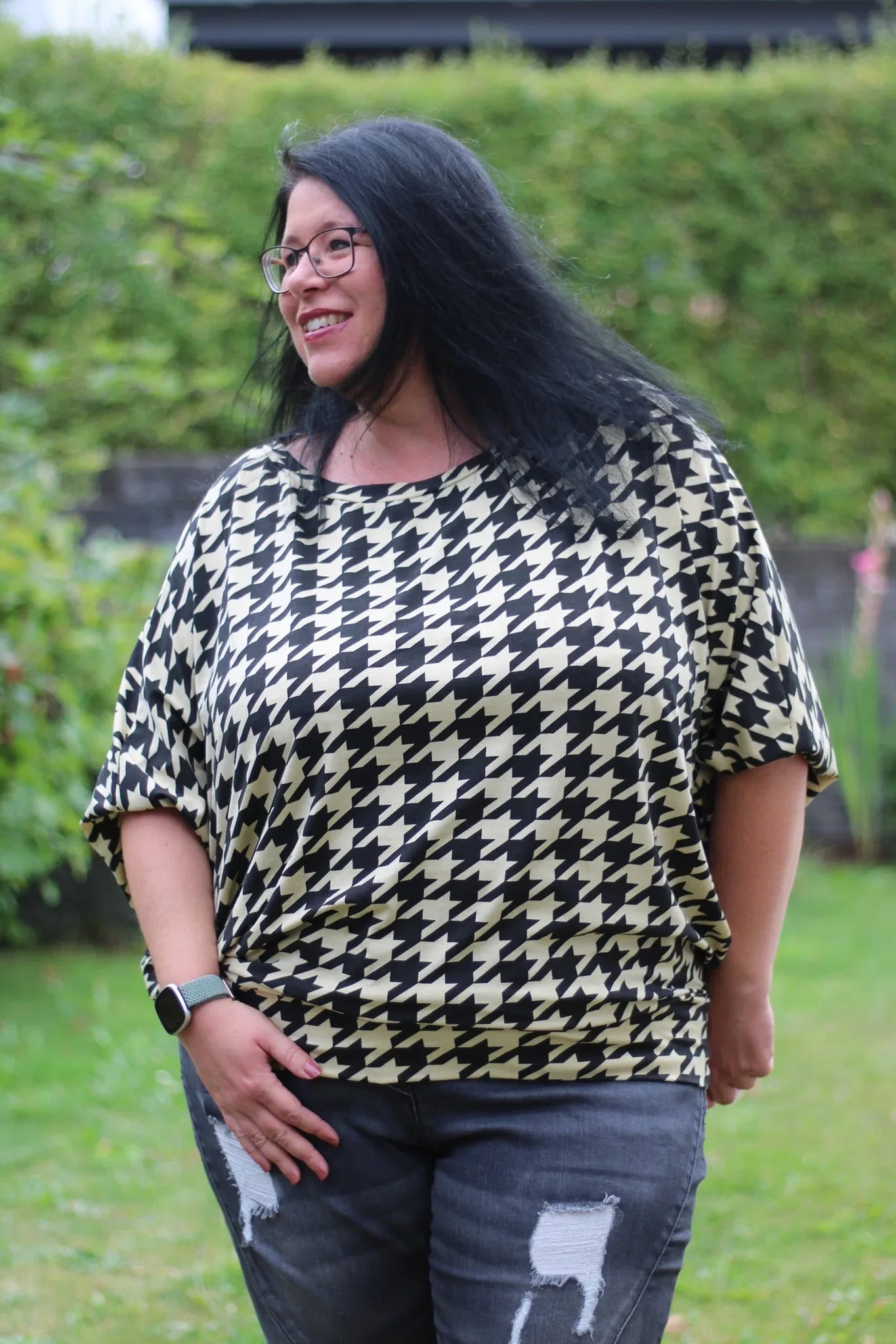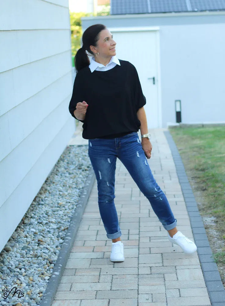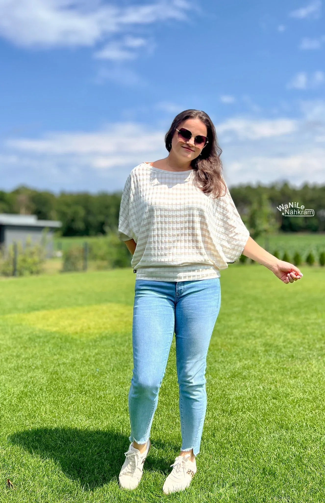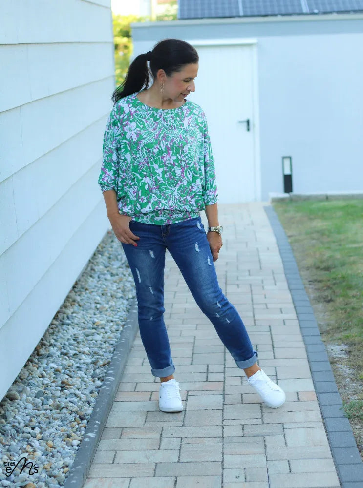 Der besondere Fledermaus-Schnitt mit 3/4-Ärmeln und Bündchen verleiht dem Pullover eine entspannte Silhouette, die zu jeder Figur passt. Du kannst wählen, ob du den Saumbund schmal oder breit arbeiten möchtest – ganz nach deinem Stil.