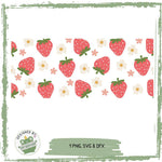 Ein Design, das nach Sommer schmeckt! Saftige Erdbeeren kombiniert mit süßen Retro-Blümchen auf schwarzem Hintergrund – ideal für fröhliche DIY-Projekte, bei denen gute Laune garantiert ist.