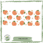Dieses Design bringt den Sommer direkt in deine DIY-Küche! Saftige, handgezeichnete Pfirsiche kombiniert mit zarten Margeriten auf schwarzem Hintergrund – ein fröhliches, verspieltes Muster, das sofort Lust auf Sonne, Garten und Eistee macht. Die leuchtenden Farben wirken besonders intensiv auf Libbey Gläsern, Tumblern oder Tassen.