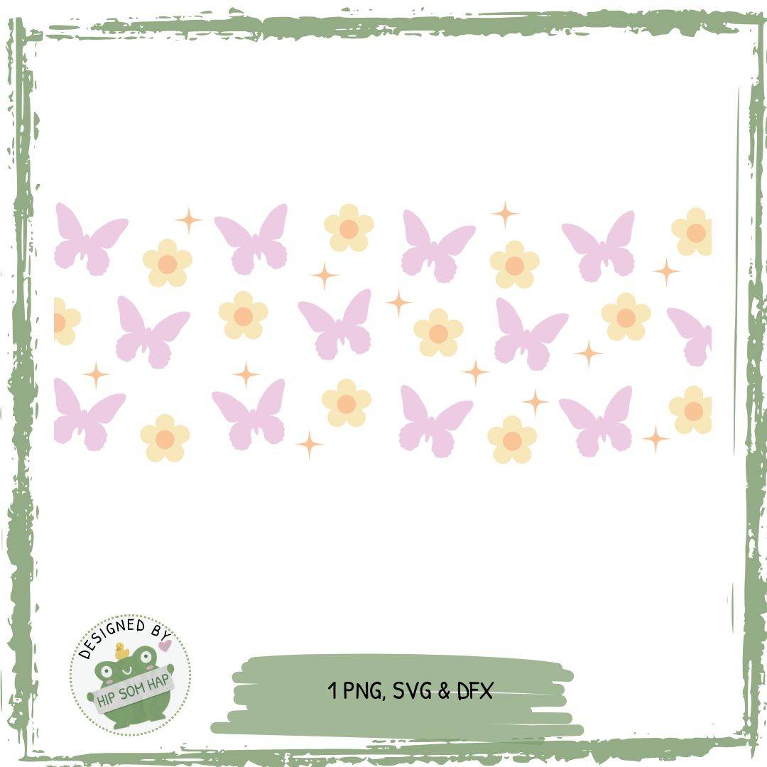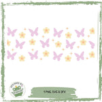 Dieses süße Sublimationsdesign kombiniert verspielte Schmetterlinge in sanftem Flieder mit zarten Blumen in Buttercreme-Gelb – ergänzt durch kleine funkelnde Sterne. Der Look ist ideal für alle, die ihre DIY-Projekte mit einem Hauch Leichtigkeit und Frühlingsfrische gestalten möchten.