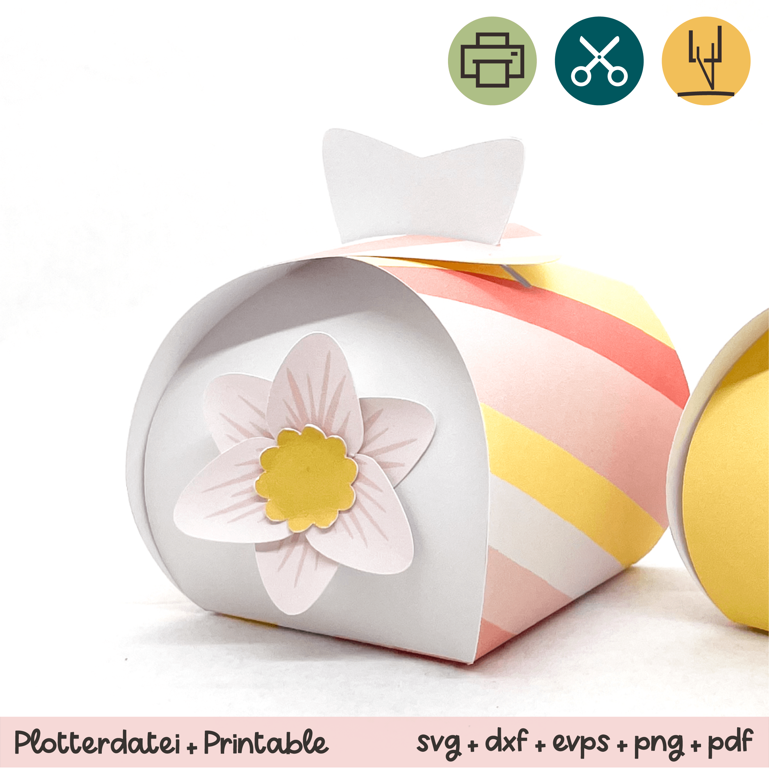 Mit dem Plotter super schnell gemacht und wunderschön für Kleinigkeiten zu Ostern. Das Paket beinhaltet die Druckvorlage und die Plotterdatei. Also einfach ausdrucken, ausschneiden (auch leicht per Hand möglich) und schließen. Kein Kleben notwendig. Du benötigst nur weißes, festes Druckerpapier.