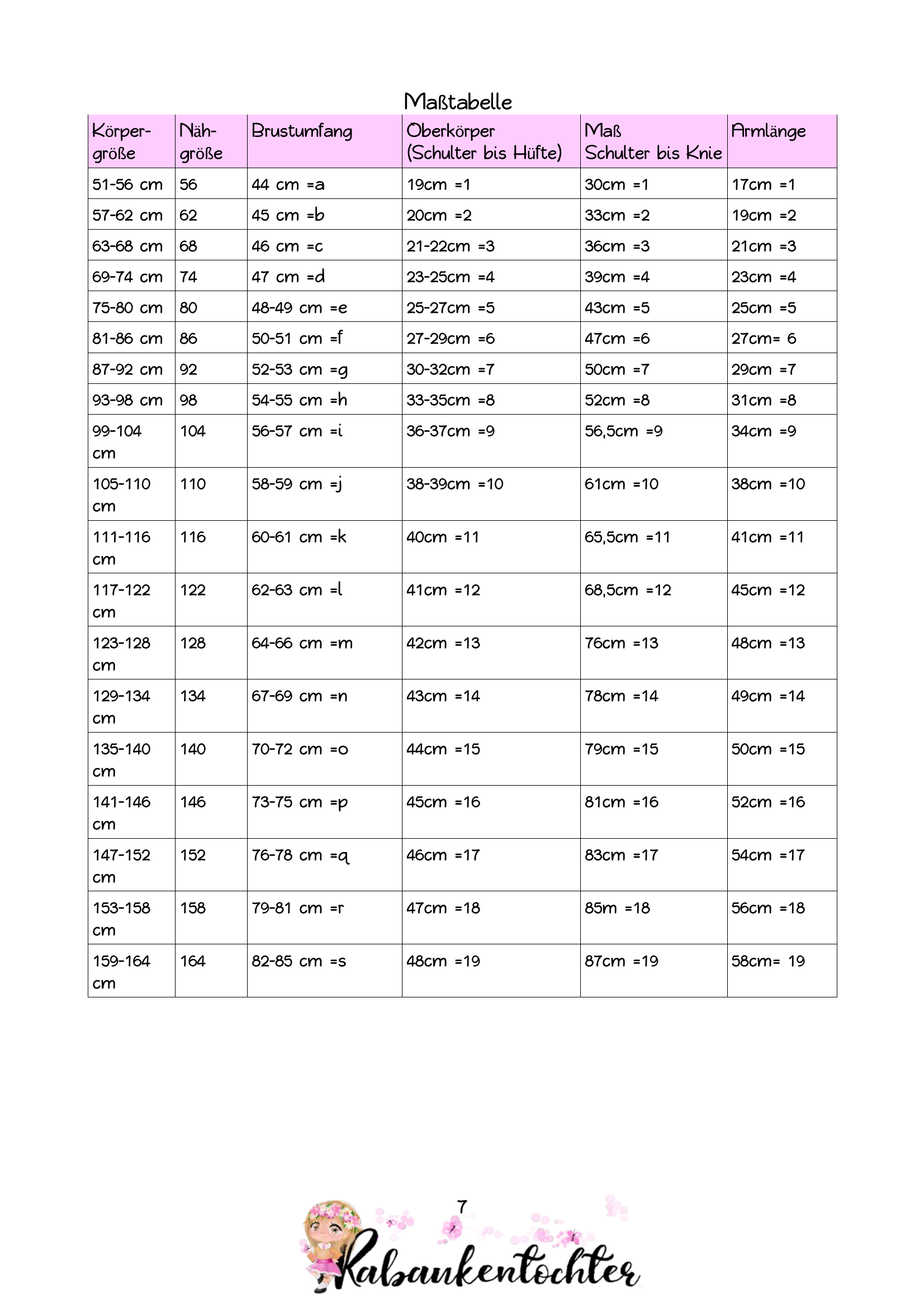 Alternativ kannst du aber auch nach Konfektionsgröße nähen.