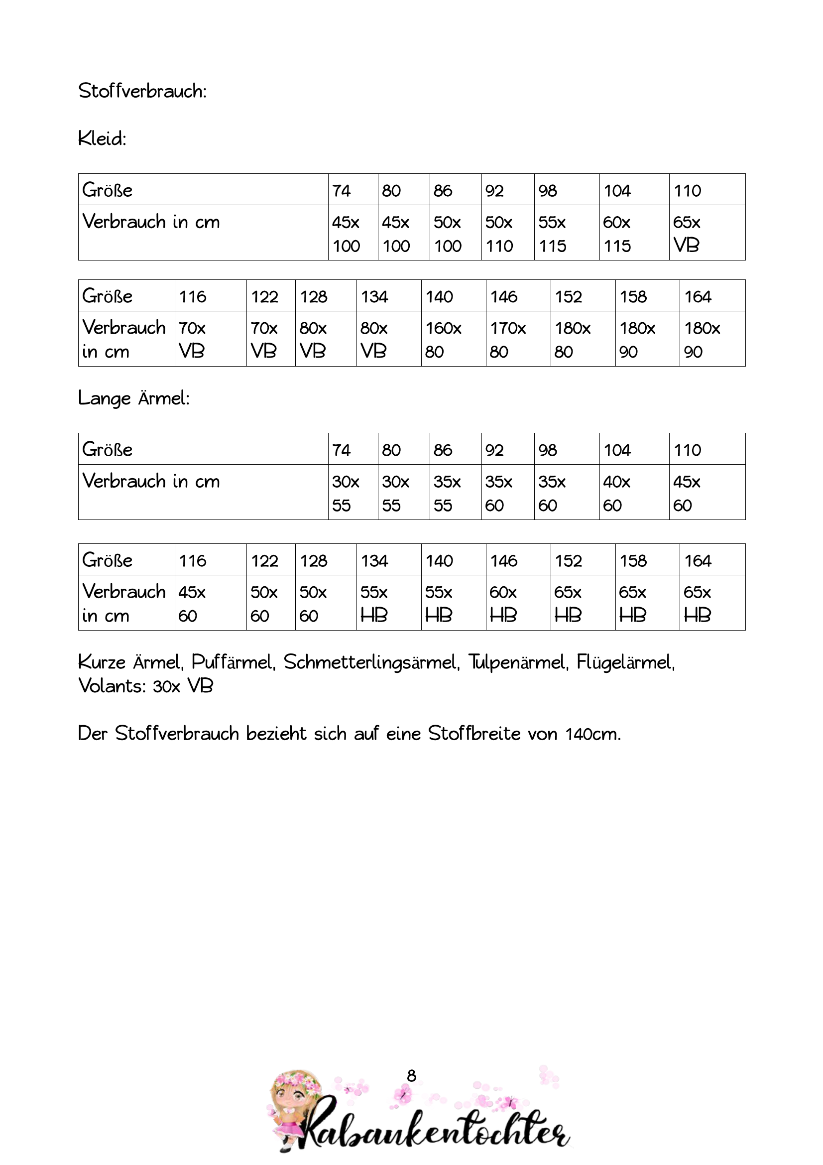 zur gewerblichen Nutzung frei verwendet werden. Es bedarf keiner gesonderten Lizenz. Wünschenswert ist die Erwähnung des Designers und der Name des Schnittmusters.