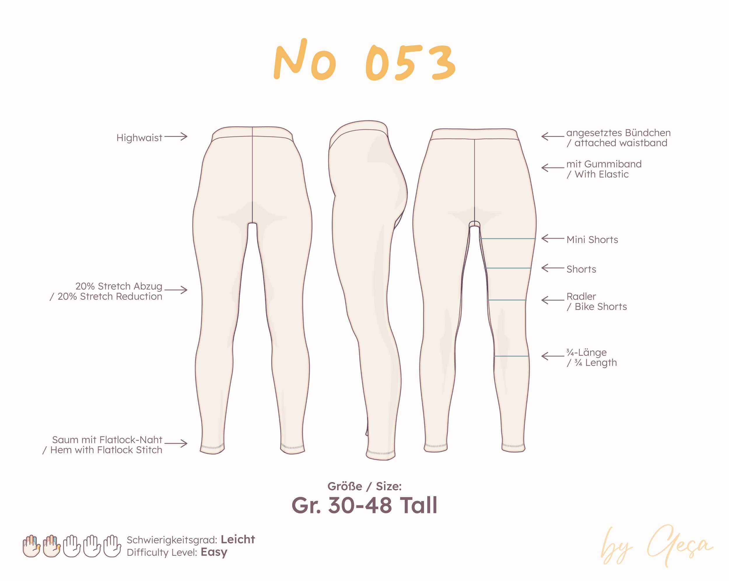 High-Waist Leggings – Schnittmuster (PDF) – Tall Gr. 30–48
