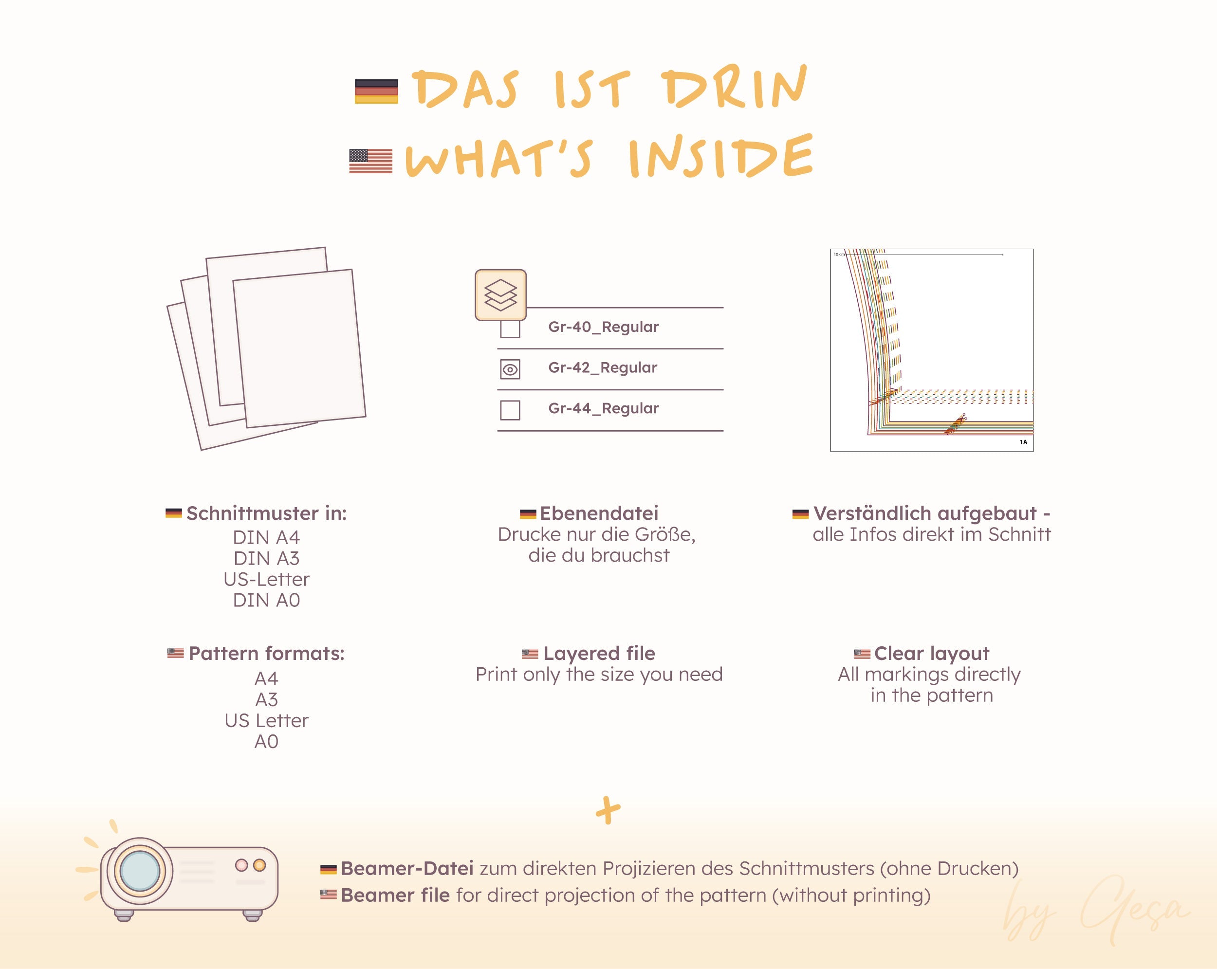 • Beamer-Datei zum direkten Projizieren des Schnittmusters (ohne Drucken)