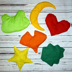 mit Frosch, Mond, Herz, Ginkgo, Stern und Blatt.