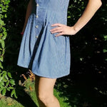 Designdetails: enganliegend, tailliert, Prinzessnähte vorn und hinten, tiefer Rundhalsausschnitt, Knopfleiste vorn, Möglichkeit zum Raffen oder Falten des Rockteils, ärmellos