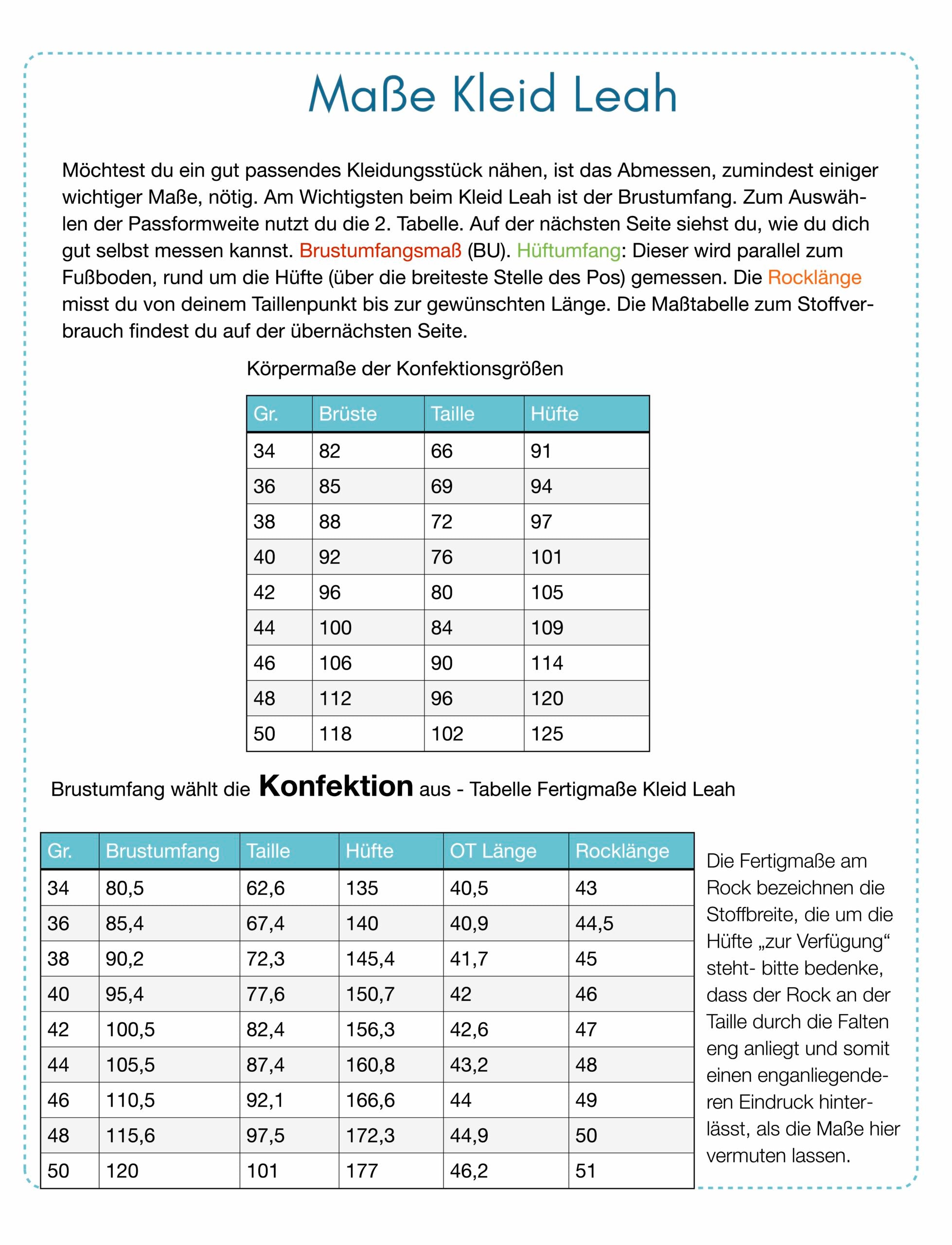 Schnittaufbau: Einzelgrößen in 34-50 als Mehrgrößenschnitt, exklusive Nahtzugabe