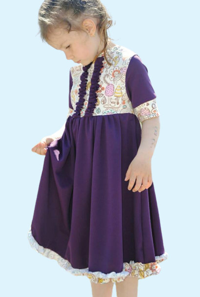 Mit diesem Ebook könnt ihr eurem Kind ein süßes Kleid nähen. Ihr könnt es schlicht halten, oder verspielt mit Rüschen verzieren. Es zeichnet sich durch einen weiten, schwingenden Rockteil aus, der gerafft, oder in Kellerfalten gelegt wird. Im Ebook werden verschiedene Gestaltungsmöglichkeiten gezeigt, sodass ihr aus dem Grundschnitt euer individuelles Lieblingsstück machen könnt.