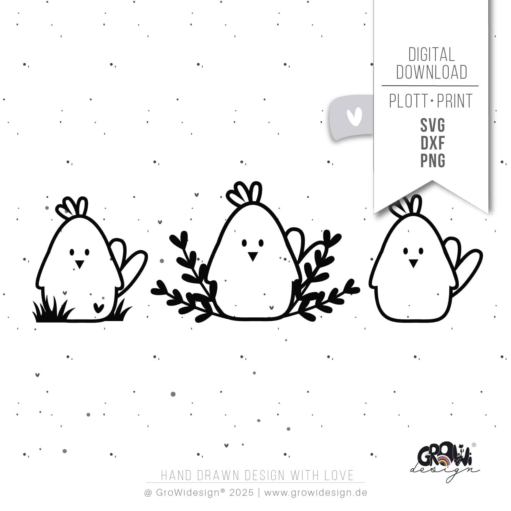 In der ZIP-Datei erhältst du die Kükenliebe Plotterdatei im SVG, DXF & PNG Format. Die Mini-Gewerbelizenz, die enthalten ist, erlaubt dir bis zu 5 Verkäufe mit diesem Design. Darüber hinaus ist die Nutzung im Laser erlaubt, was dir zusätzliche kreative Möglichkeiten eröffnet.