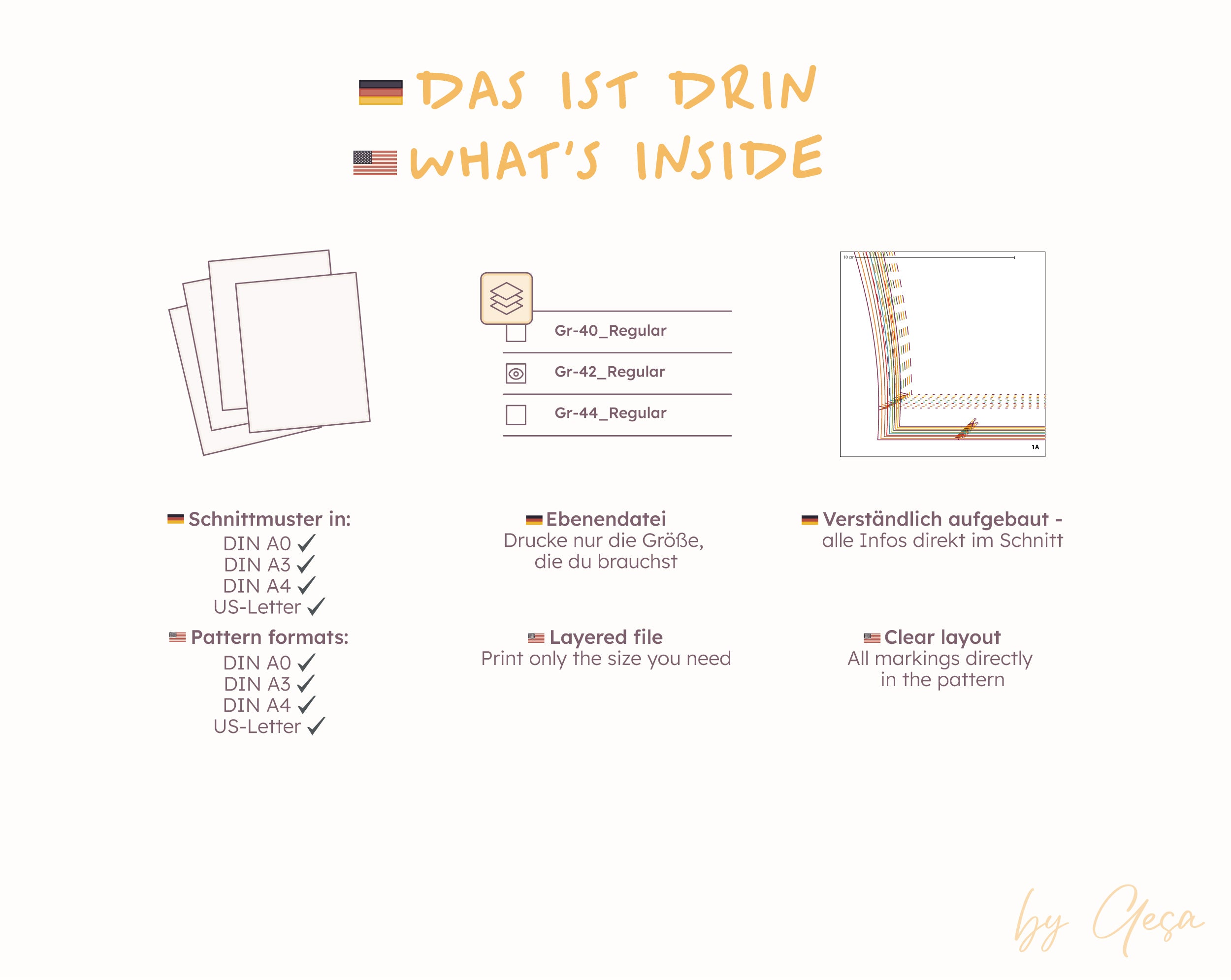 Schnittmuster in DIN A4, DIN A3 und US-Letter Format