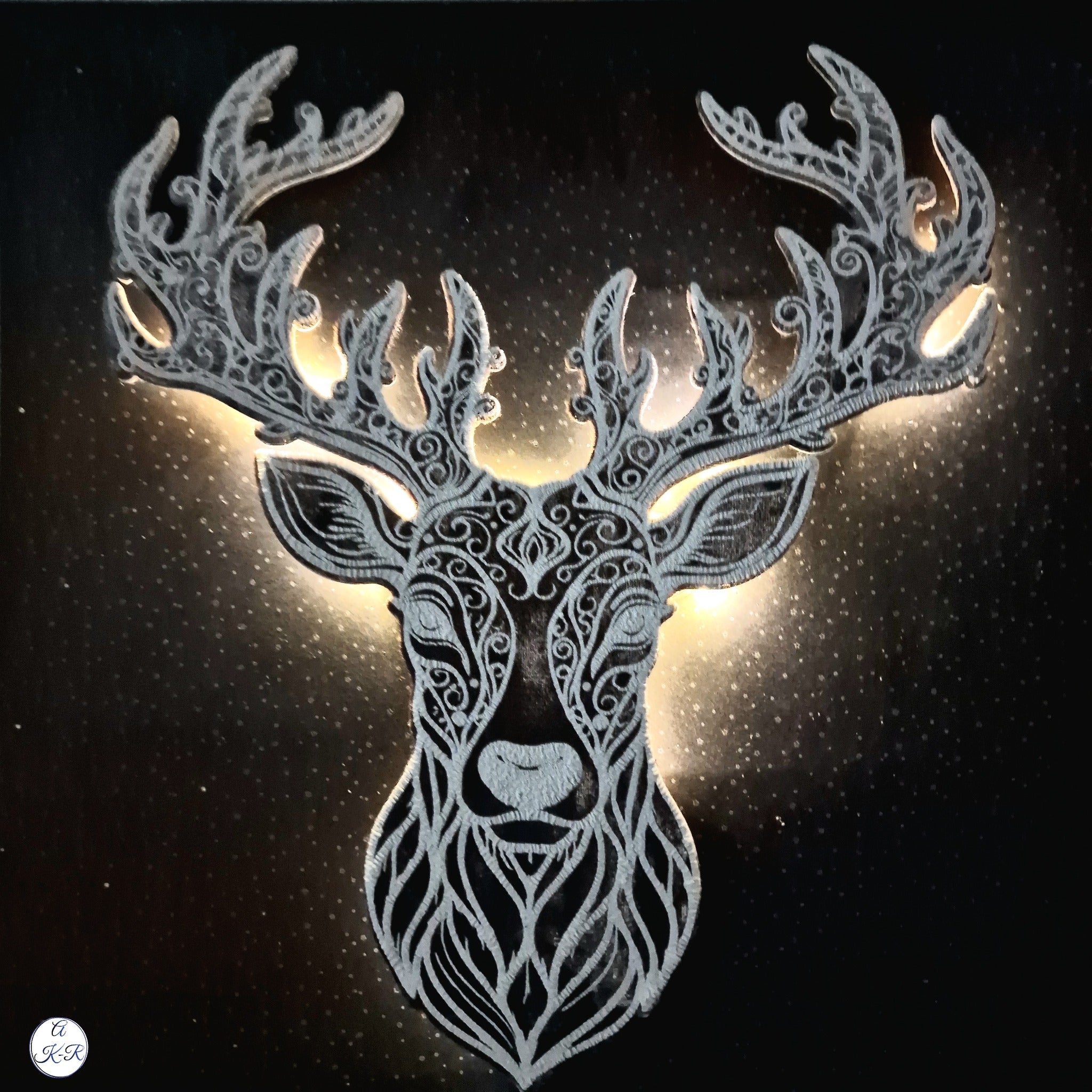 🦌 ein detailreicher Hirsch mit filigranen Ornamenten,