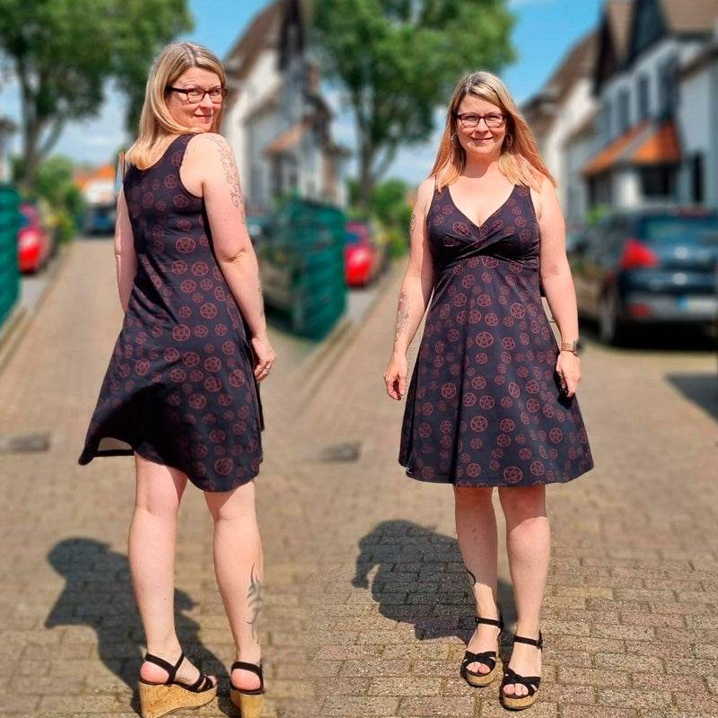 Kaum etwas zaubert eine so schmeichelhafte Brustpartie, wie überkreuzende Linien. Und dies habe ich beim Knothing für euch perfektioniert. Durch die raffinierte Schnittführung, habt ihr vorn keine störenden Nähte im sichtbaren Bereich und einen sauberen Knoten, der aber gar kein Knoten ist. Und da die Kreuzung nicht in der Seitennaht verschwindet sondern durch einen kleinen Trick in das Vorderteil integriert ist, habt ihr an den Seiten auch nicht noch mehr Stoff, der die Optik in die Breite ziehen könnte. Dazu habe ich die gewohnte Vielfalt an Röcken und Ärmeln im Baukastensystem im Angebot, sodass eurer Fantasie kaum Grenzen gesetzt sind. Von Sommer, Strand und Freizeit bis Abendgarderobe gibt es wie immer zahlreiche Möglichkeiten.