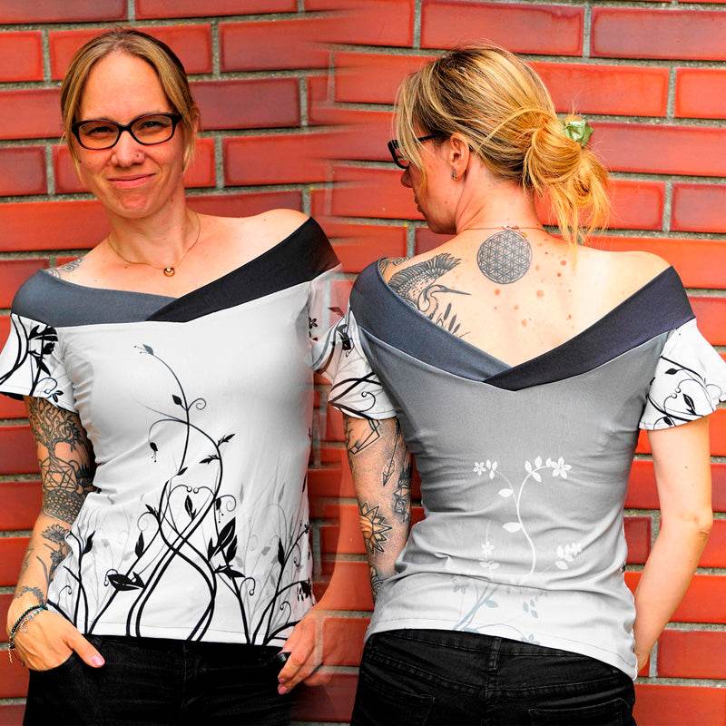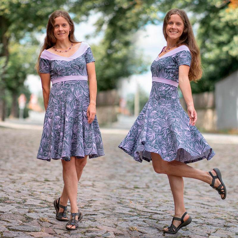 - Der Schnitt ist auf Jersey und ähnlich dehnbare Materialien ausgelegt (Viskosejersey, Modal, gut dehnbarer French Terry ...)