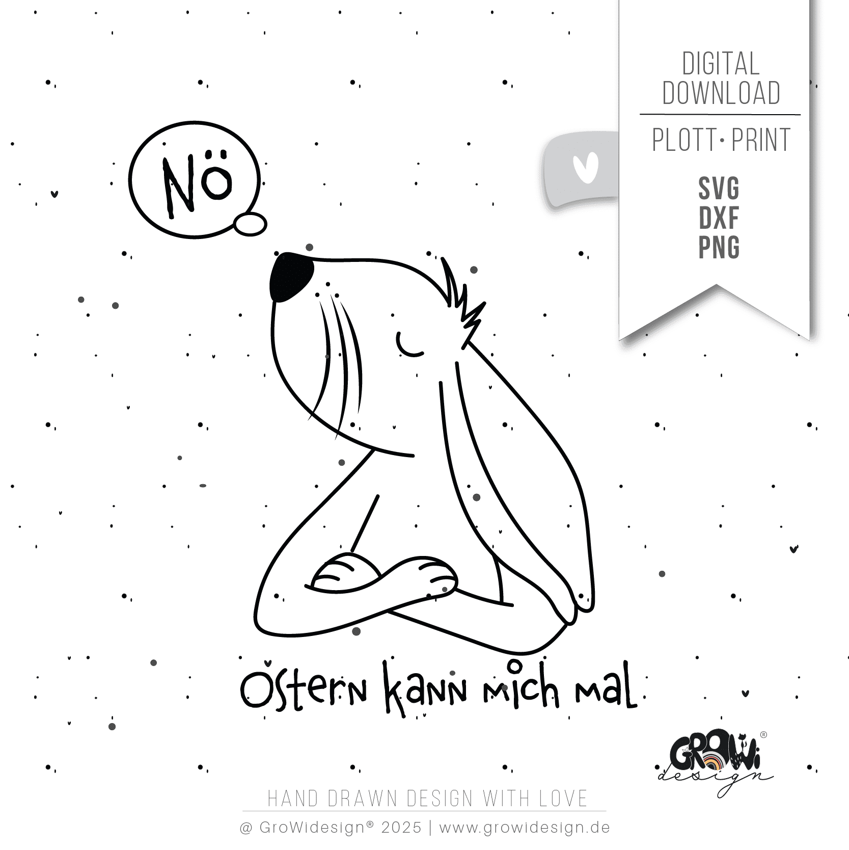 Auch ein Hase darf mal keine Lust auf Ostern haben. Eine witzige Plotterdatei für dein Osterprojekt. Das Motiv ist für einfarbig plotten angelegt. Zudem ist die Plotterdatei für Silhouette, Cricut oder Brother Plotter optimiert, so dass du direkt loslegen kannst.