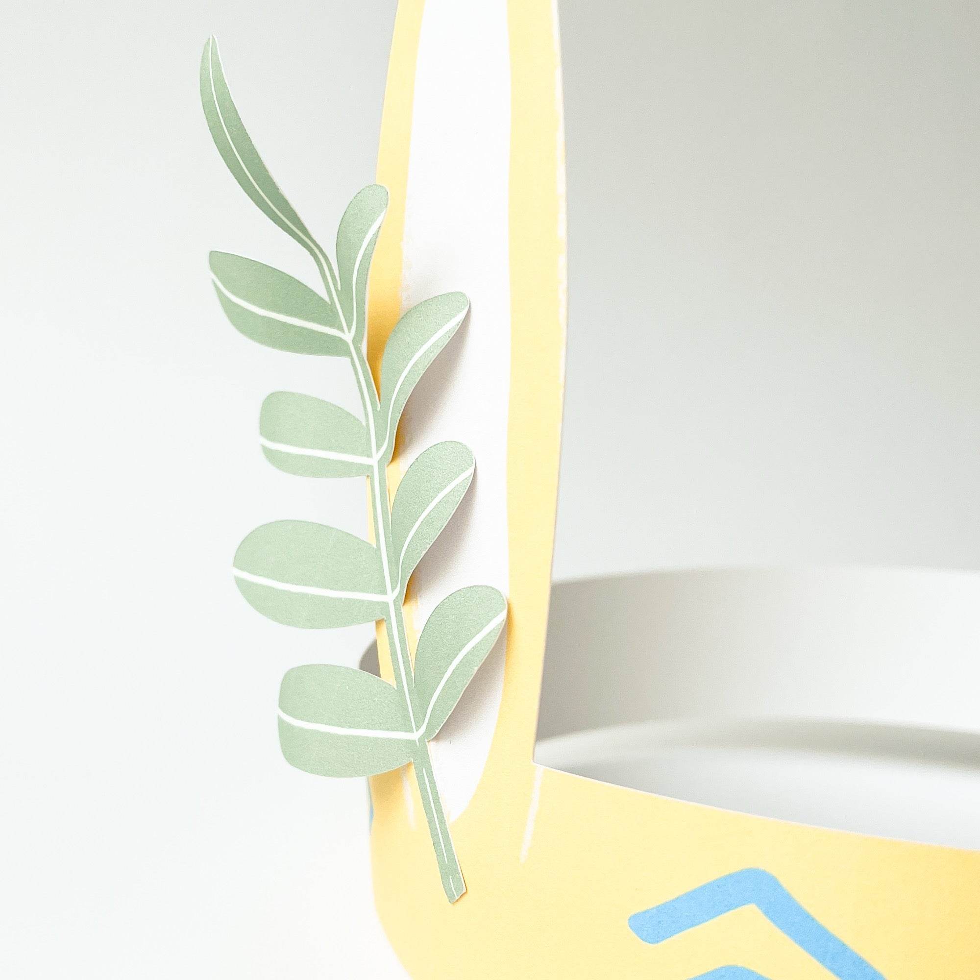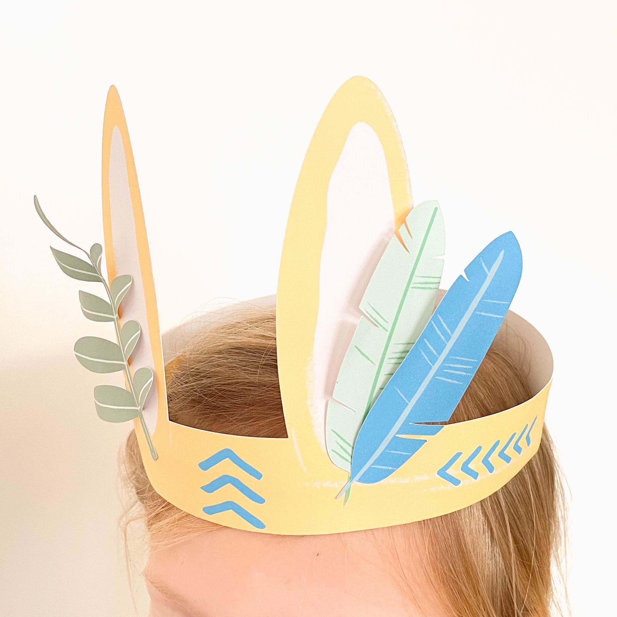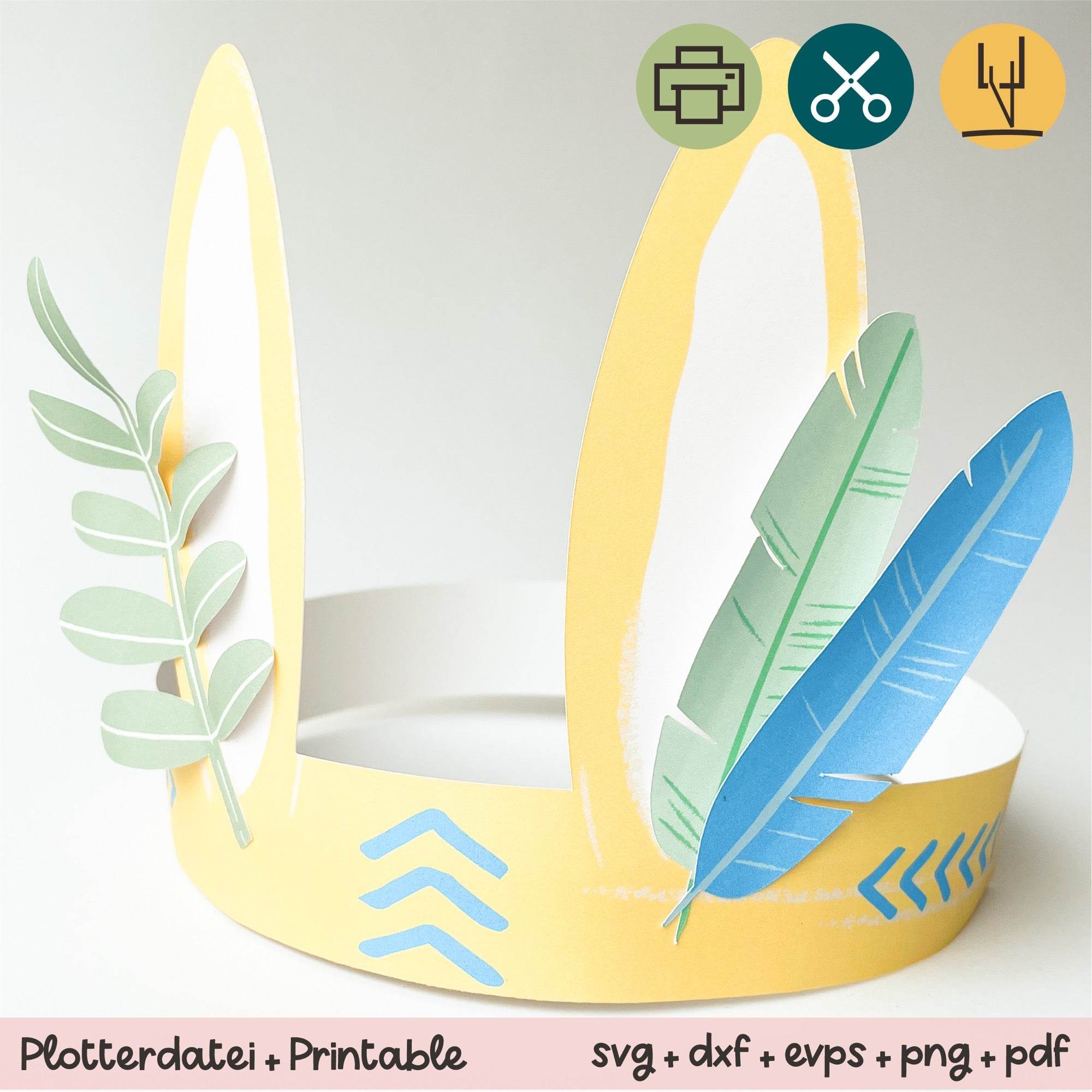 Stirnband / Krone Hasenohren gelb mit Federn und Blättern - Bastelbogen zum Ausdrucken
