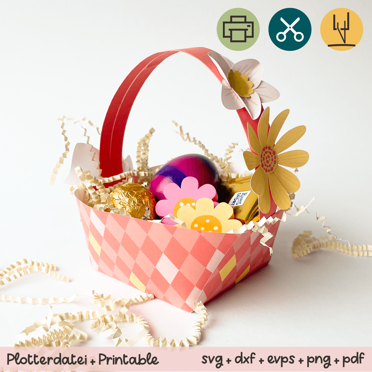 Osterkörbchen - Rautenmuster rot - Printable für Schere oder Plotter - Sewando