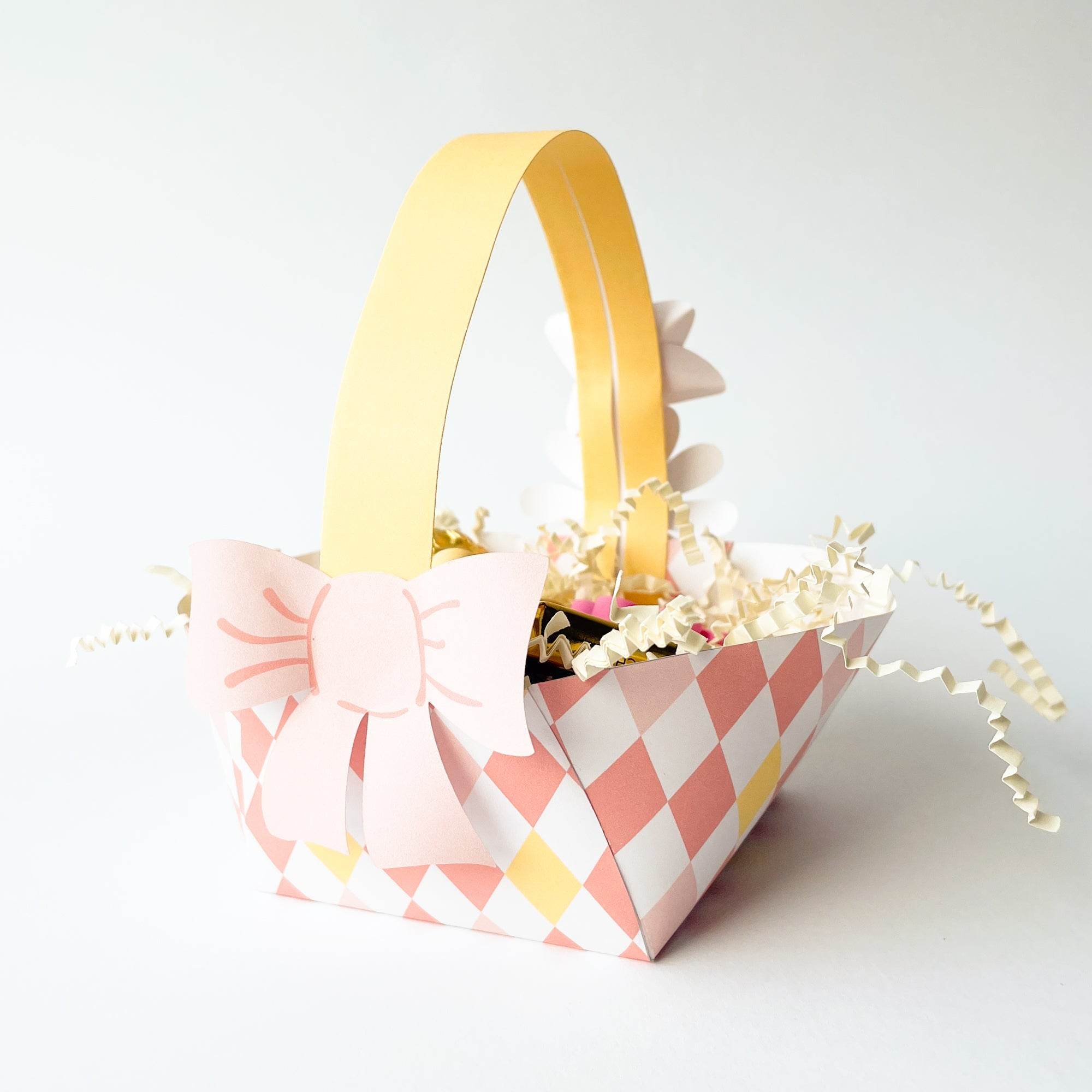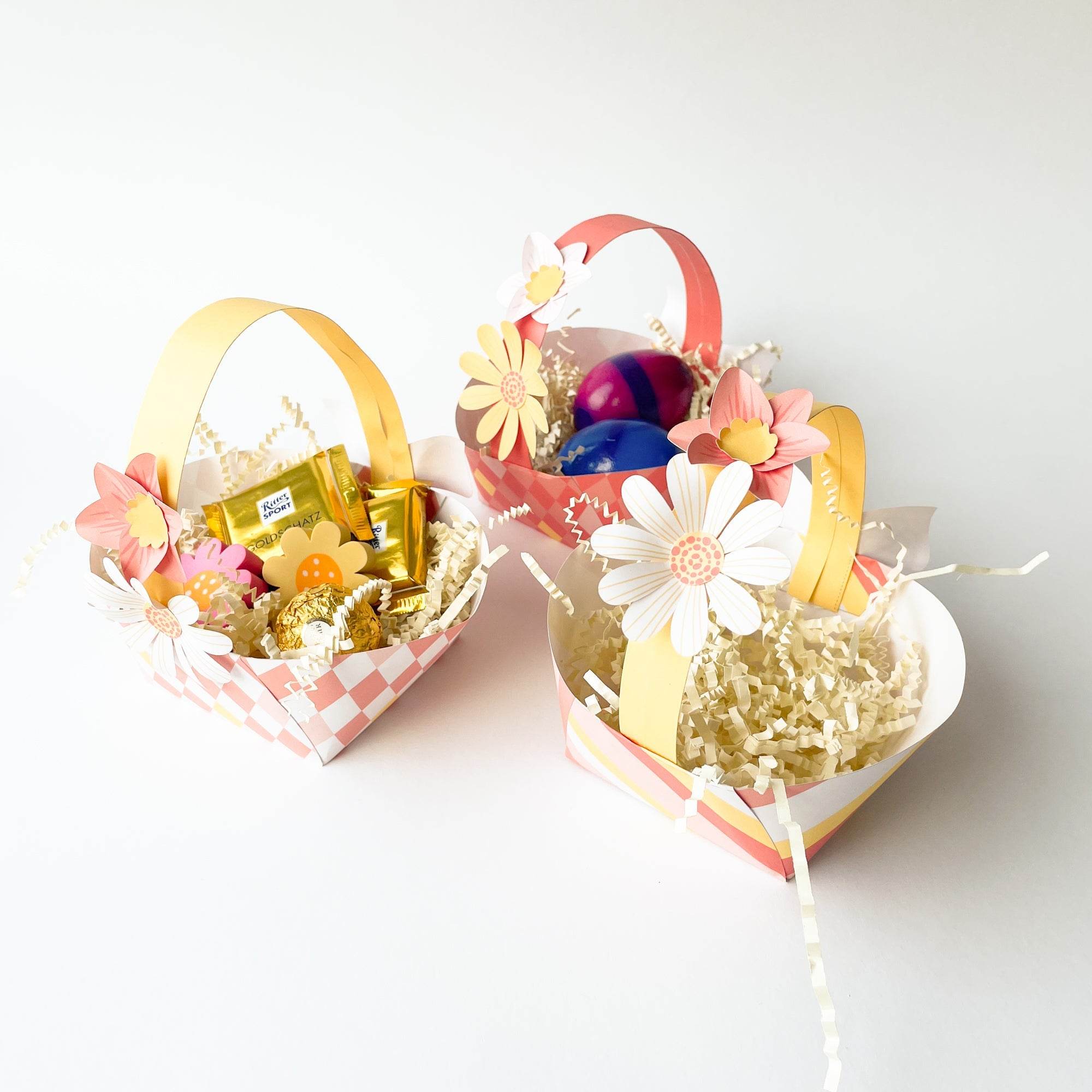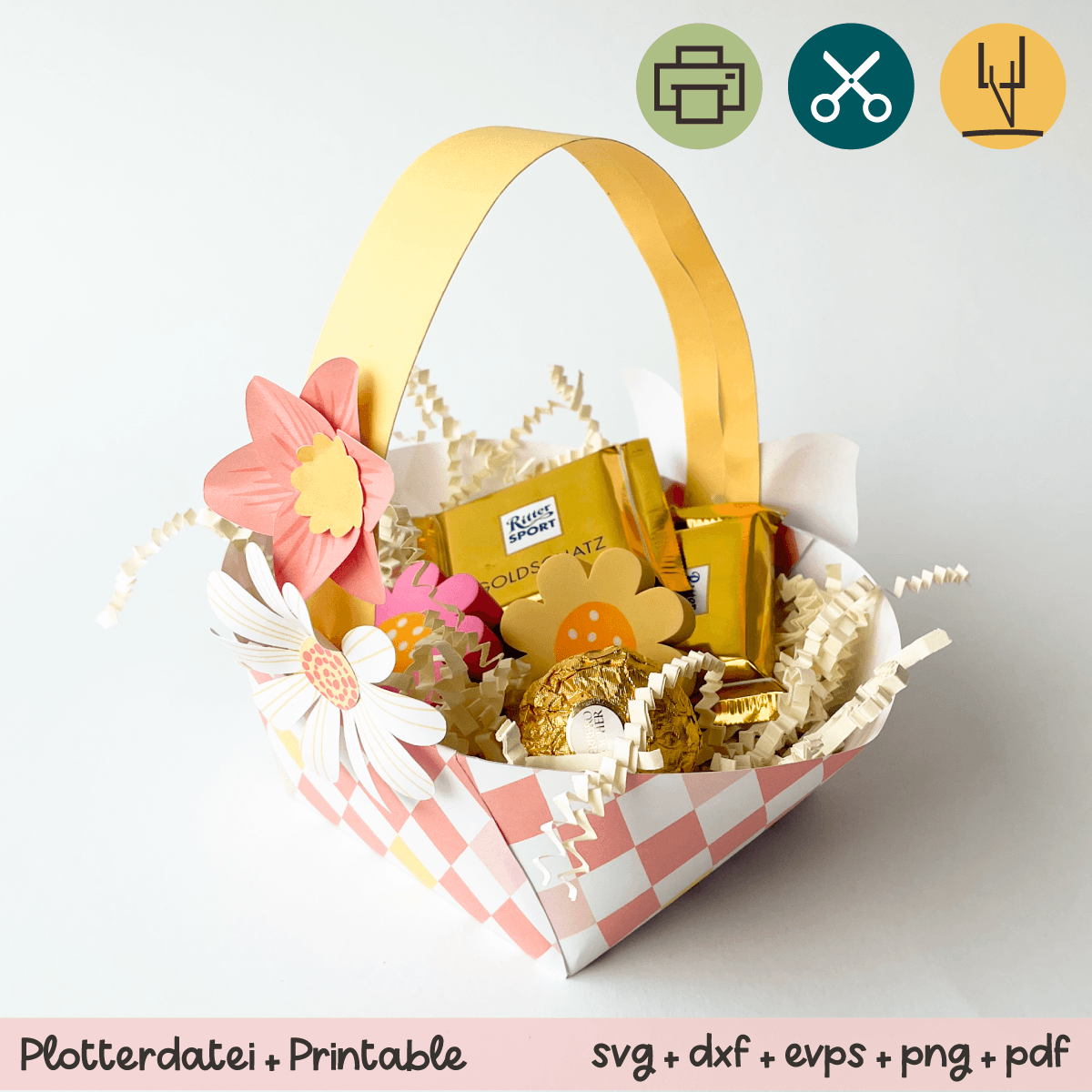Osterkörbchen mit Henkel und Dekoelementen in Frühlingsfarben
