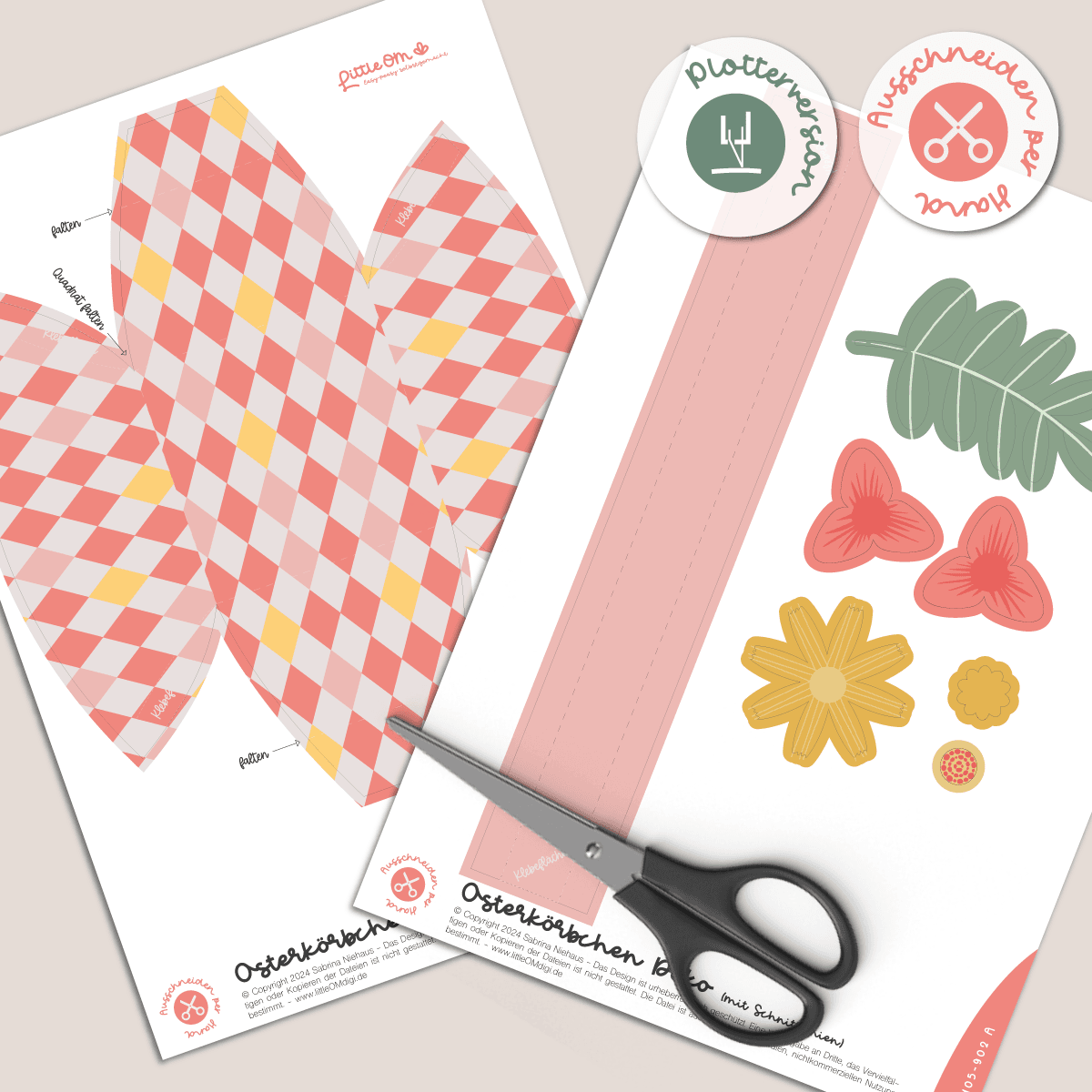 Osternest - Rautenmuster rot-weiß - Printable für Schere oder Plotter