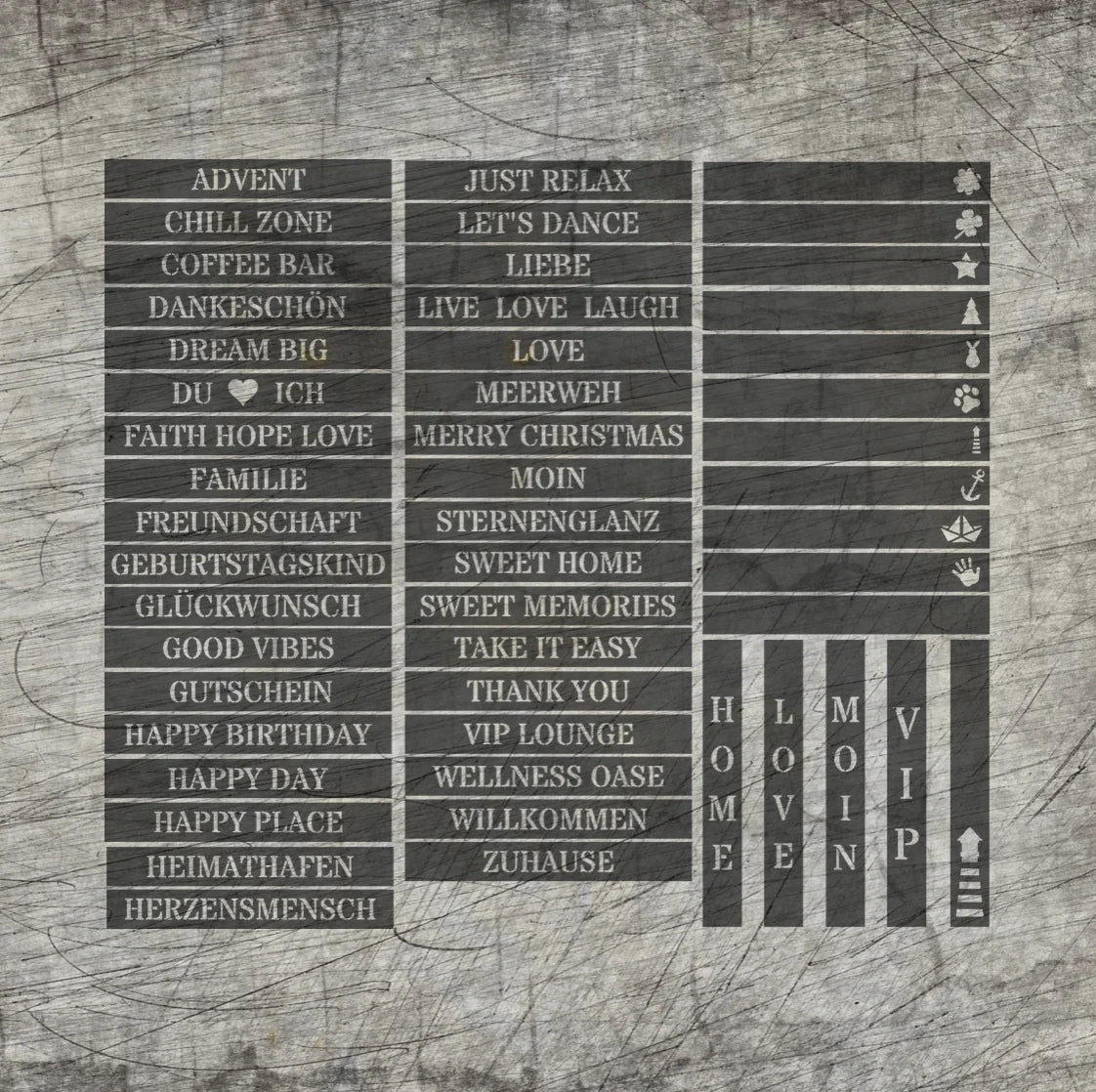 * 50 Sticks mit Stenicl Schrift oder Motiv & 1 Blanko Stick zum plotten, lasern und für den 3 D Druck vorbereitet