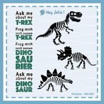 Ob T-Rex, Triceratops oder Stegosaurus – mit diesen coolen Dino-Skeletten und Schriftzügen bringst du echtes Urzeit-Feeling auf Shirts, Taschen, Dosen oder Holzschilder.