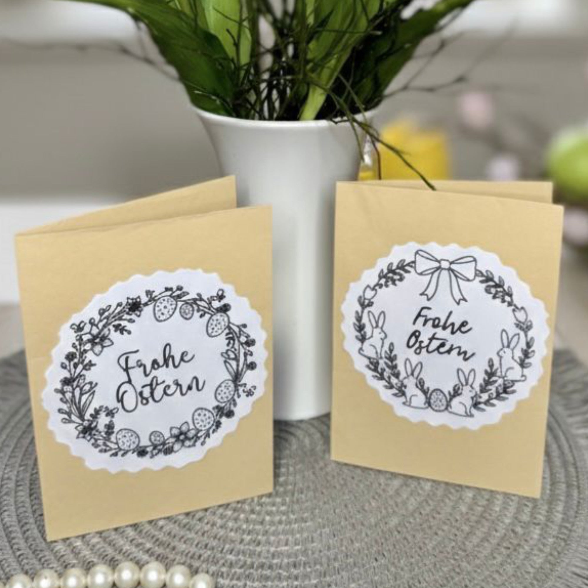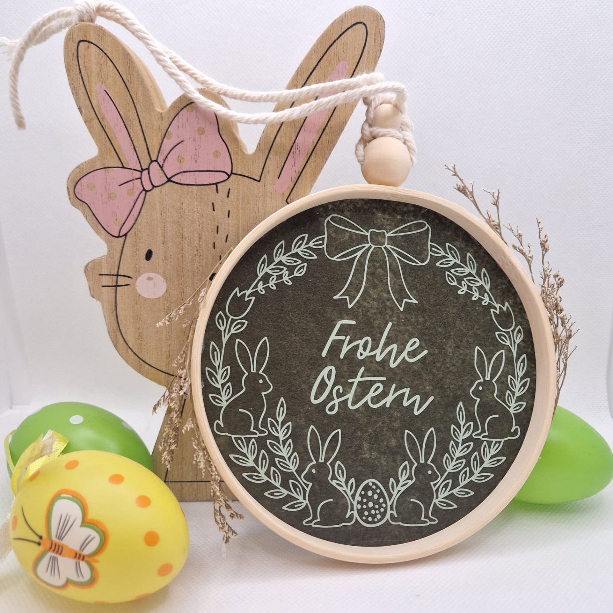 Bring deine Osterdekoration auf das nächste Level! Mit dem Dateiset „Osterkränze 2026“ erhältst du zwei wunderschön ausgearbeitete Kranz-Designs, die den klassischen Schriftzug „Frohe Ostern“ stilvoll einrahmen.