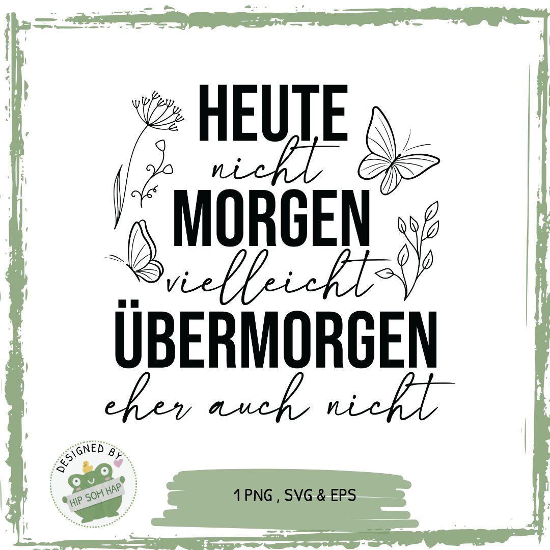 Diese Plotterdatei ist wie gemacht für alle, die mit Humor und einem Hauch Selbstironie durchs Leben gehen. Der witzige Spruch „Heute nicht – Morgen vielleicht – Übermorgen eher auch nicht“ trifft den Nerv aller, die gerne mal einen Gang runterschalten.