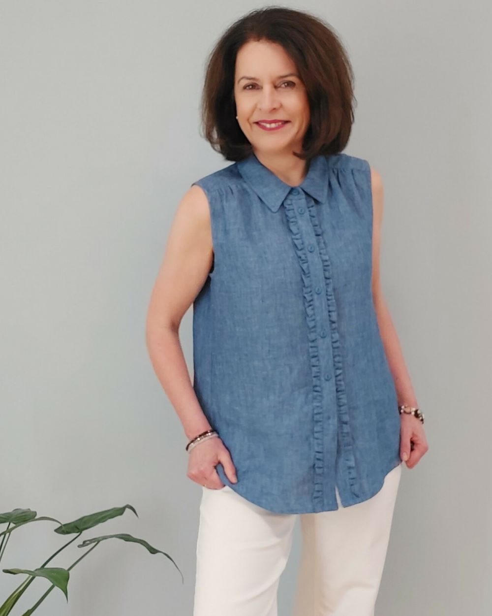 Du kannst dir dann neue Sandy-Blusen im aktuellen Hemdblusen-Stil nähen, immer wahlweise, mit und ohne Rüsche.