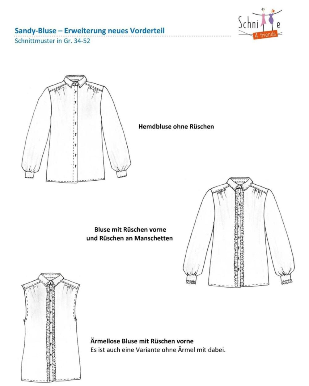 Sandy-Bluse mit/ohne Rüschen bekommt als Erweiterung ein zusätzliches Vorderteil.